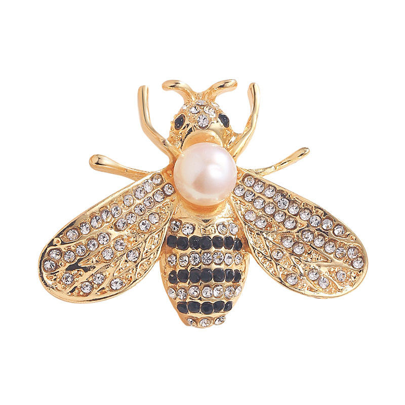 เข็มกลัดรูปผึ้งประดับมุกน้ำจืดเรียบง่าย สไตล์แฟชั่นสำหรับผู้หญิง