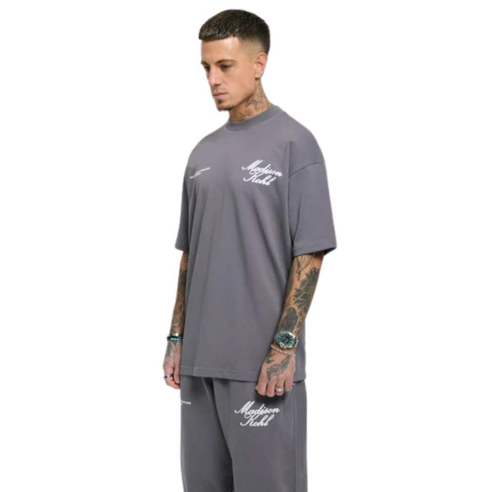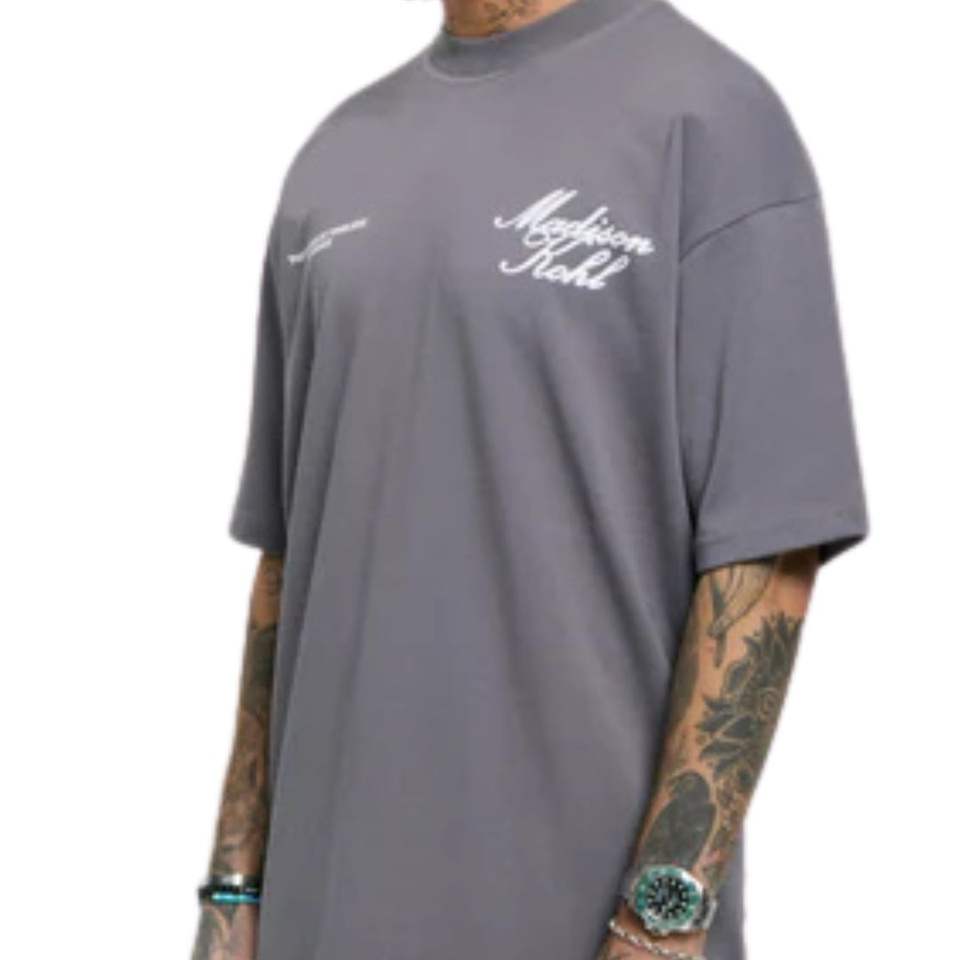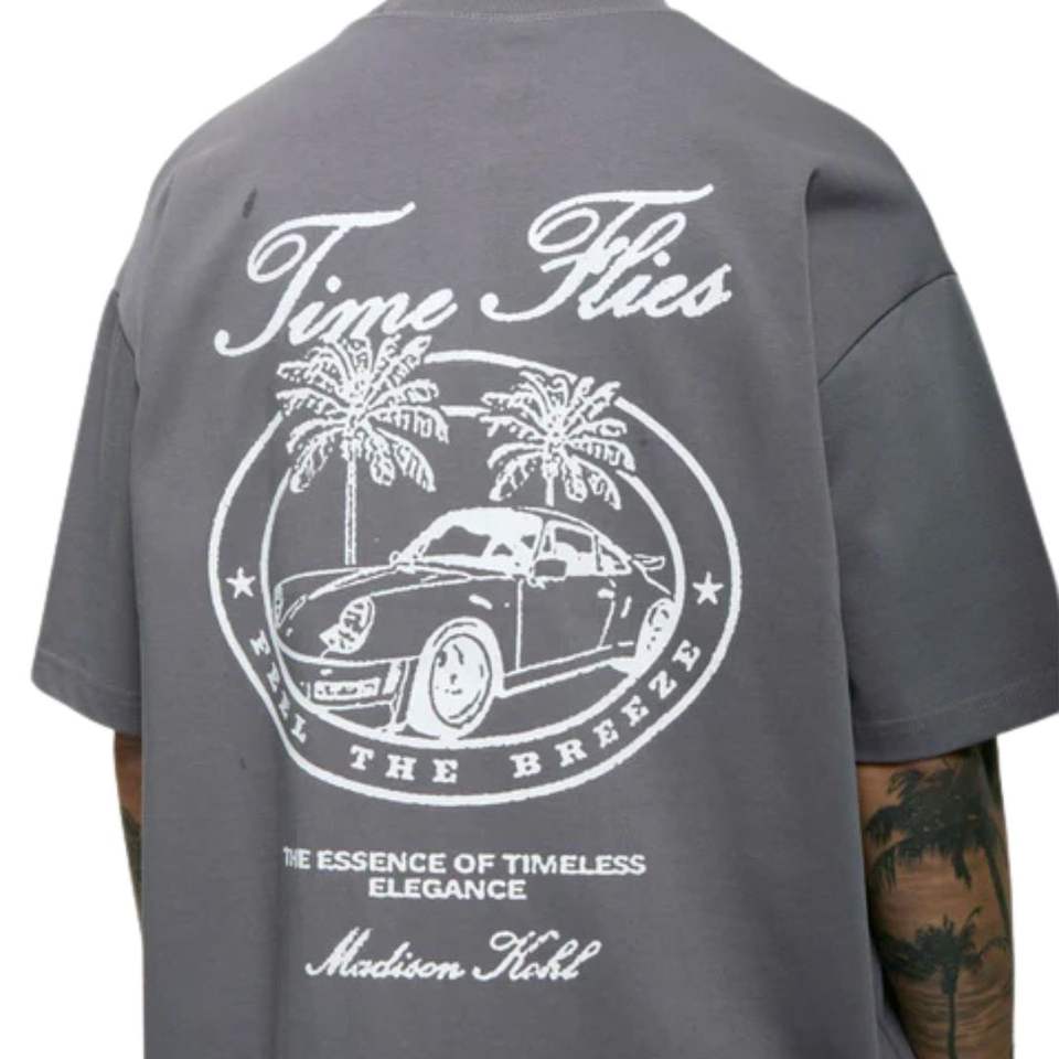 Time flies เสื้อยืดขนาดใหญ่สีเทา300 GSM ผ้าฝ้าย MID-weight ใส่สบายพอดีกับ boxy ไหล่ลดลงคอซี่โครงสุดหรู