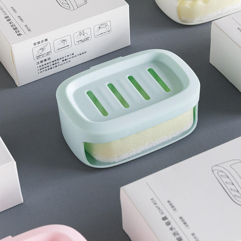 ที่วางสบู่ติดผนังทรงสี่เหลี่ยมพลาสติกแบบมีรูระบายน้ำสำหรับห้องน้ำ สีเขียวอ่อนและชมพูอ่อน