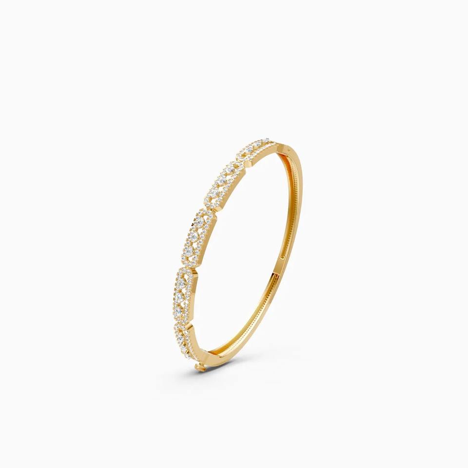 กำไลข้อมือ Kada ประดับเพชรเลี้ยงในห้องปฏิบัติการ 1.14 กะรัต ดีไซน์เหนือกาลเวลา สำหรับผู้หญิง ทำจากทอง 9K สีเหลือง ขาว และโรสโกลด์
