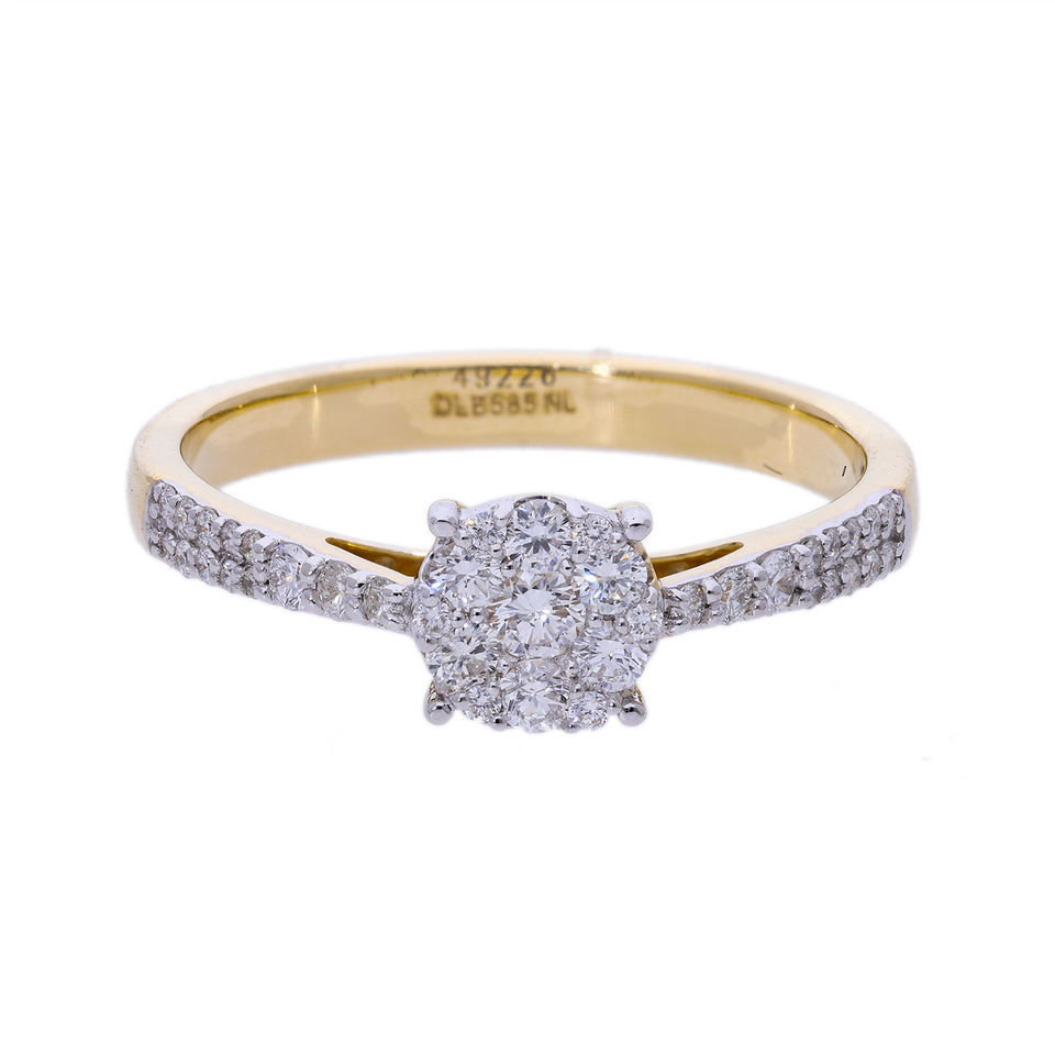 แหวนเพชรกลมกลมสีทอง14K ที่สง่างามเหนือกาลเวลาพร้อมการดึงดูดแบบคลาสสิกบนก้านที่สง่างาม