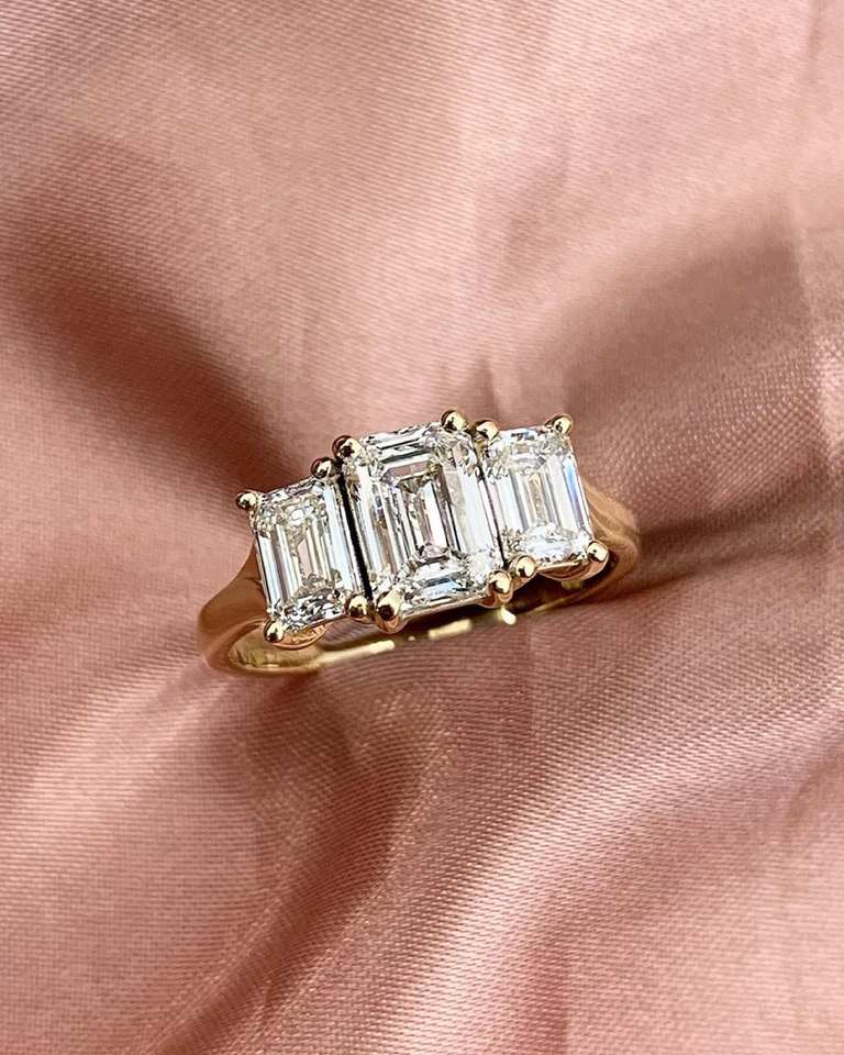 แหวนไตรภาค3.25กะรัตมรกตตัดเพชรโมอิสที่ไร้กาลเวลาทำด้วยมือใน925สเตอร์ลิงคลาสสิกแยกก้านแหวนแต่งงานสำหรับเธอ
