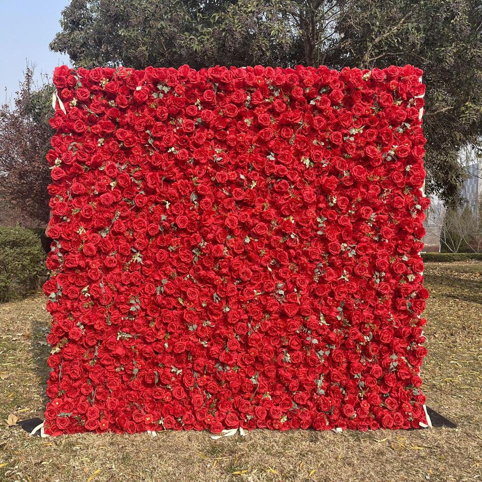 ผนังดอกไม้ประดิษฐ์ทรงตัว 8 ฟุต x 8 ฟุต สำหรับตกแต่งฉากงานแต่งงาน ถ่ายรูป และพื้นหลัง