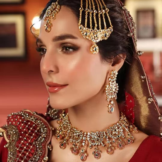 ชุดเครื่องประดับทองเหลืองคลาสสิกสำหรับเจ้าสาว พร้อมสร้อยคอ ต่างหู และแหวน ดีไซน์หรูหรา เหมาะสำหรับงานแต่งงาน งานหมั้น และงานเลี้ยง