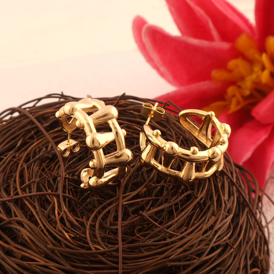 ห่วงกลมไร้กาลเวลาสีทองแบบเรียบทำจากโลหะเนื้อทอต่างหูแบบผ่าครึ่งเปิดห่วงสไตล์เรขาคณิตชุบทองทองเหลือง