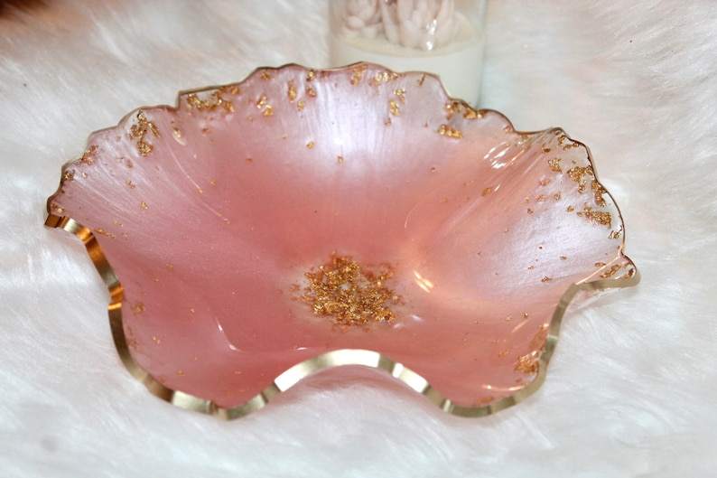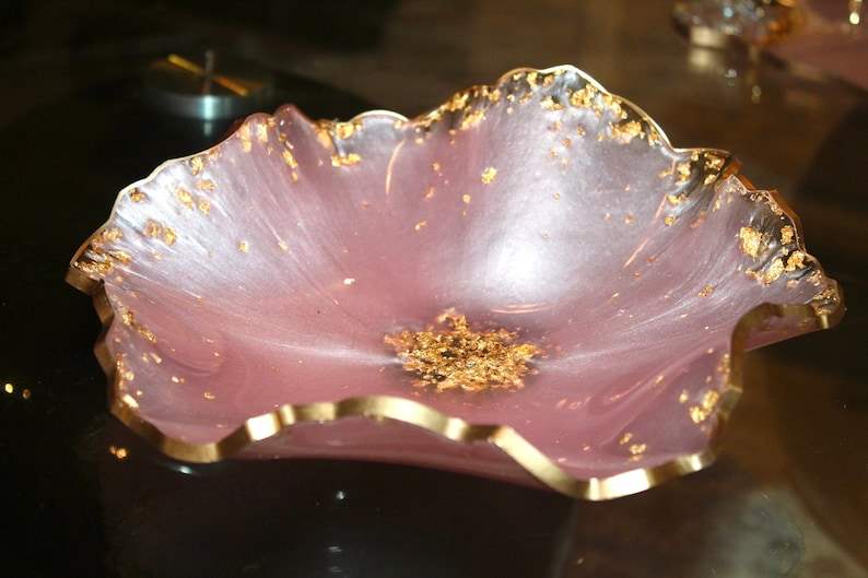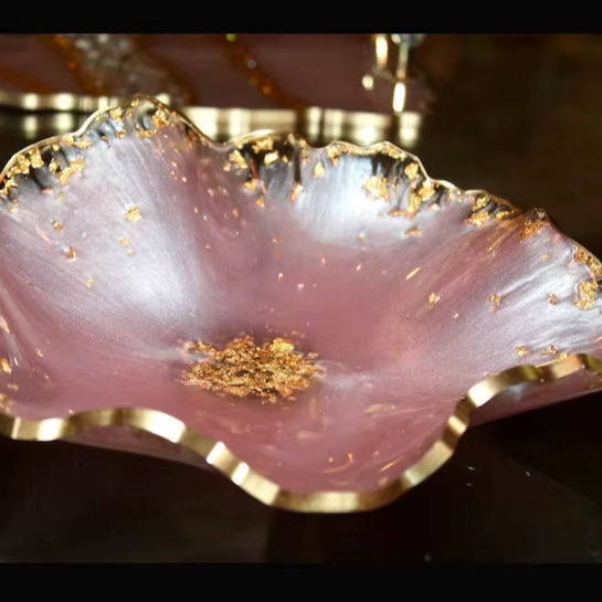 ถาดเสิร์ฟเรซิ่นสีชมพูขนาดใหญ่ งานฝีมือเหนือกาลเวลา ล้างทำความสะอาดได้ ปรับแต่งได้ พร้อมตกแต่งด้วยเกล็ดทองคำวาดด้วยมือ