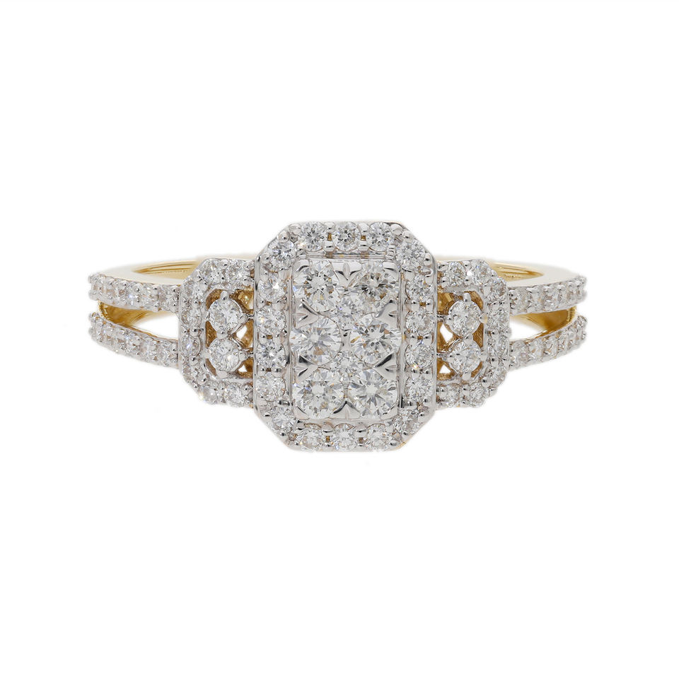 แหวนประดับเพชรทรงสี่เหลี่ยมสีทอง14K สง่างามเหนือกาลเวลาพร้อมสายคาดแบบแยก