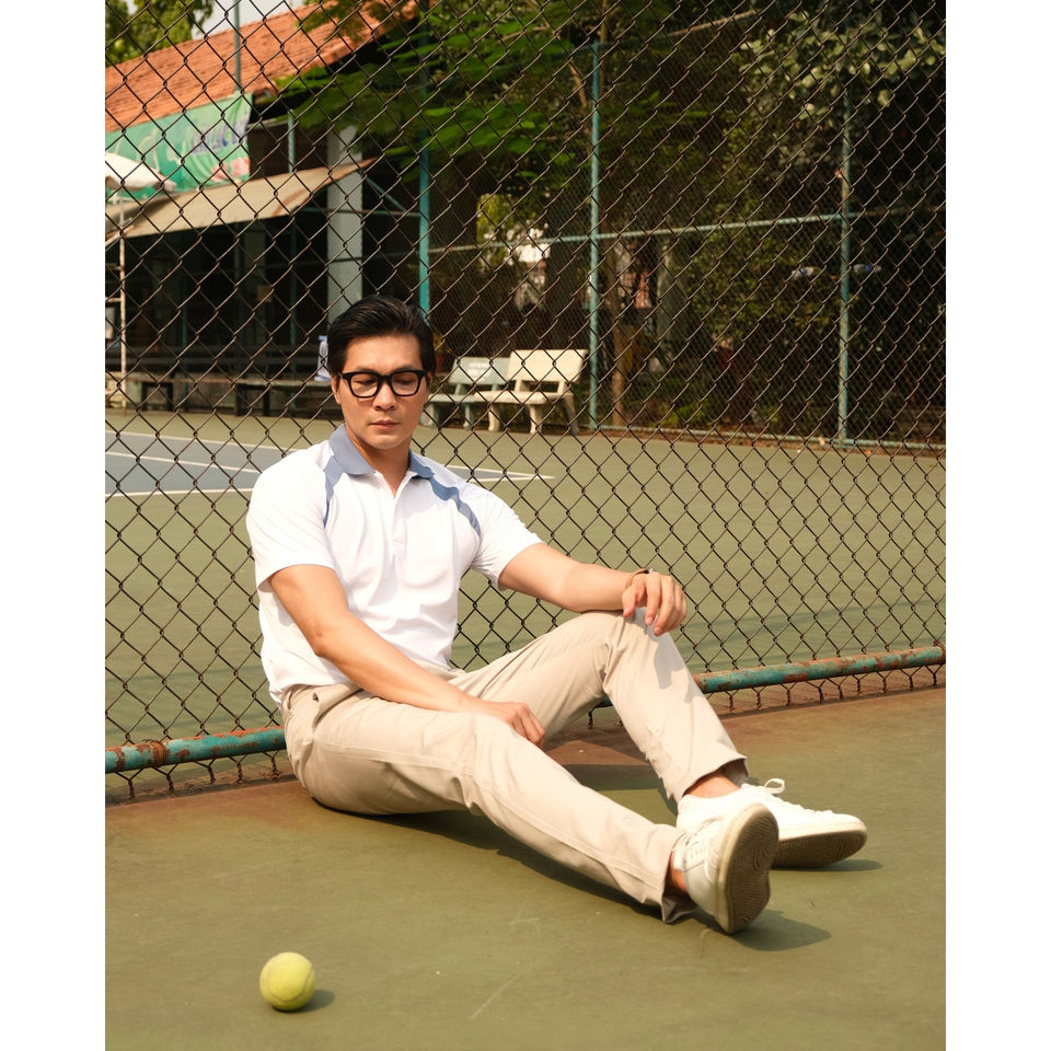 Polo Shirt with Contrast Curved Panels Down Raglans Front