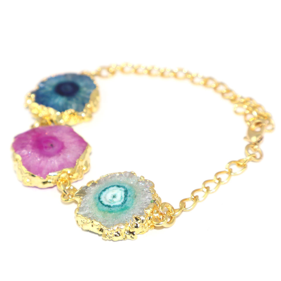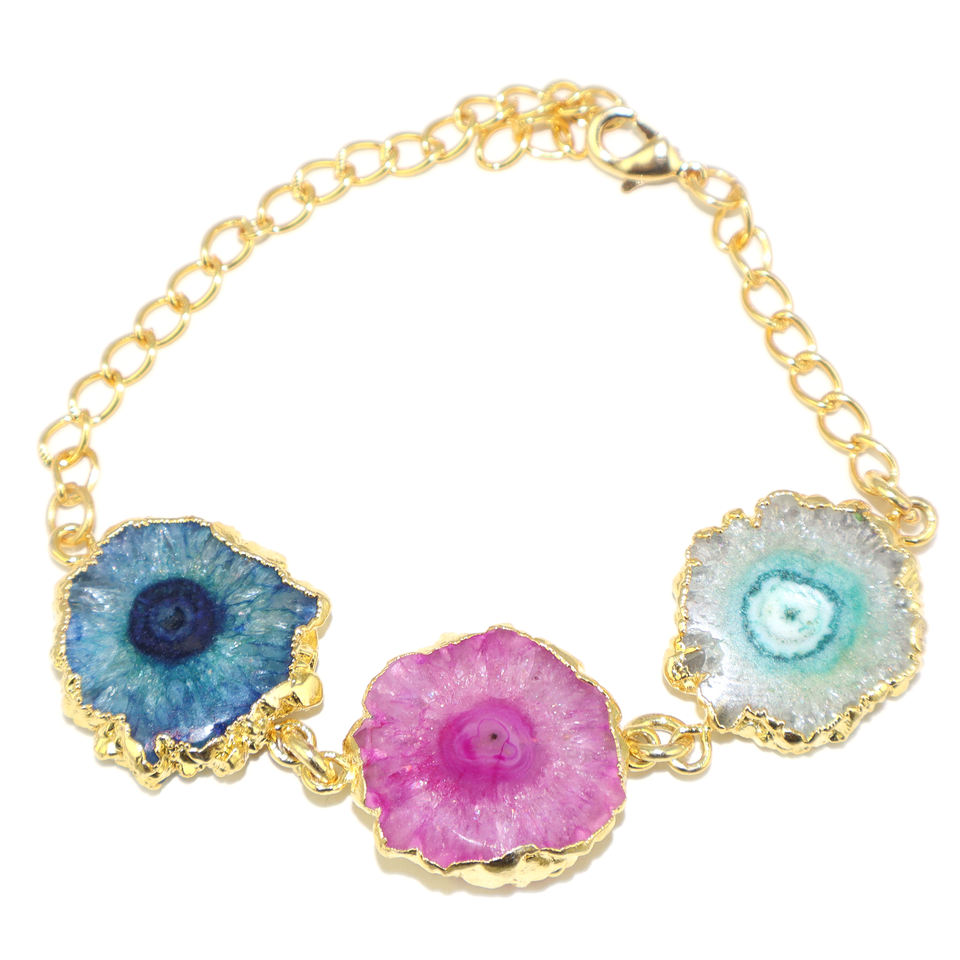 แฟชั่นเหนือกาลเวลา สร้อยข้อมือหินควอตซ์พลังงานแสงอาทิตย์ธรรมชาติ ชุบทอง 24K สายปรับได้ สำหรับผู้หญิงและเด็กผู้หญิง ขายส่งจำนวนมาก