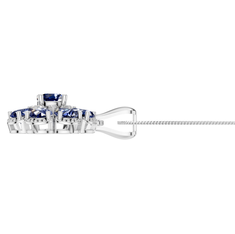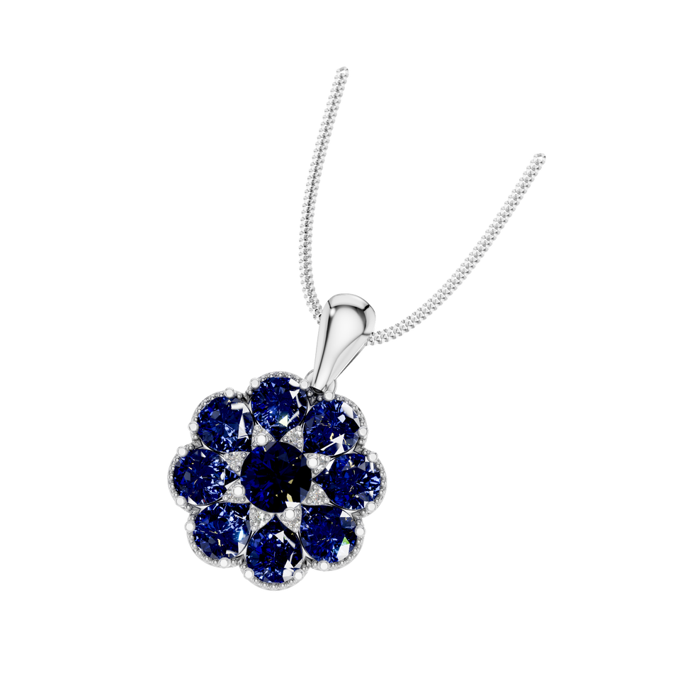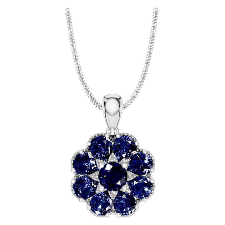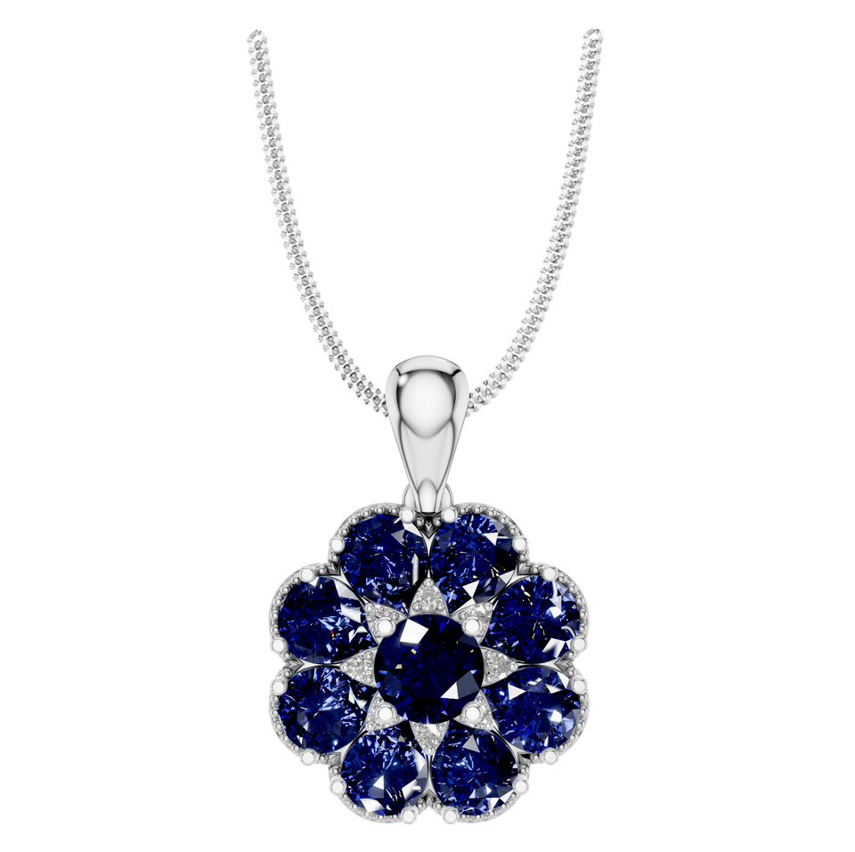 Style:Floral Blue Sapphire Pendant Studded with Natural Diamonds