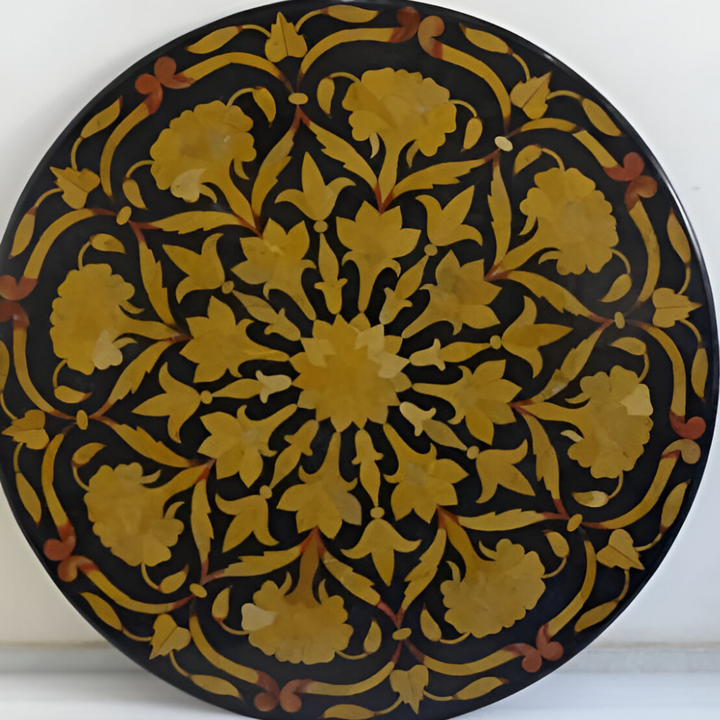 โต๊ะกาแฟทรงกลมดีไซน์ทันสมัยอมตะวิลลาตกแต่งด้วยหินอ่อนสีดำดีไซน์ดอกไม้ด้วยหินธรรมชาติ