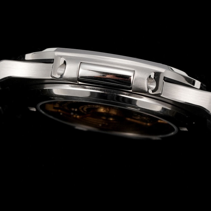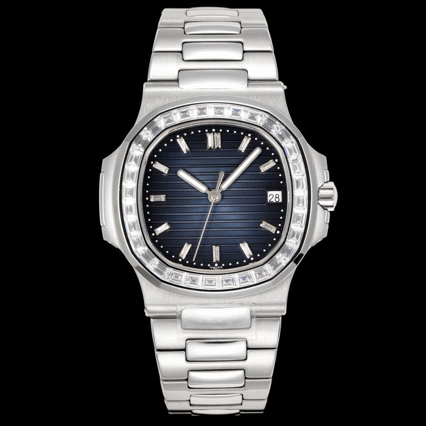 นาฬิกาทรงแปดเหลี่ยมสุดหรู ดีไซน์สปอร์ต ตัวเรือนเคลือบแพลตตินั่ม หน้าปัดไล่เฉดสีน้ำเงิน สายแบบติดตัวเรือน เหมาะสำหรับโอกาสทางธุรกิจและงานที่เป็นทางการ