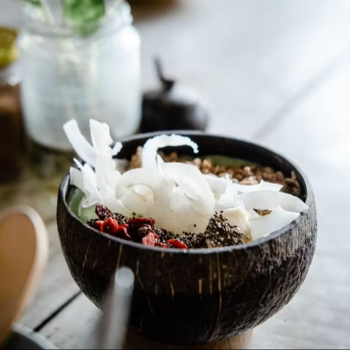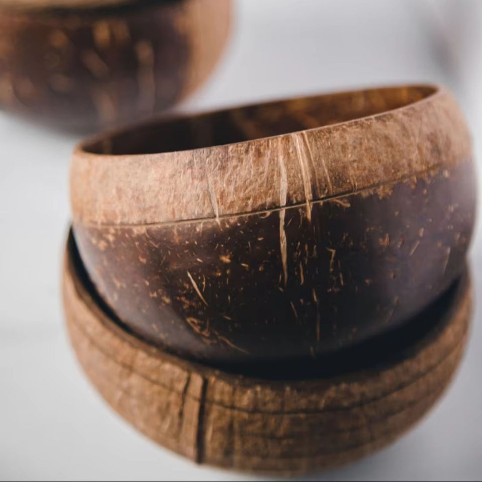 ชามเสิร์ฟทรงกะลามะพร้าวดิบสำหรับตกแต่งบ้านโต๊ะมีสไตล์สไตล์การรับประทานอาหารเทคนิคขัดเงางานฝีมือจากธรรมชาติ