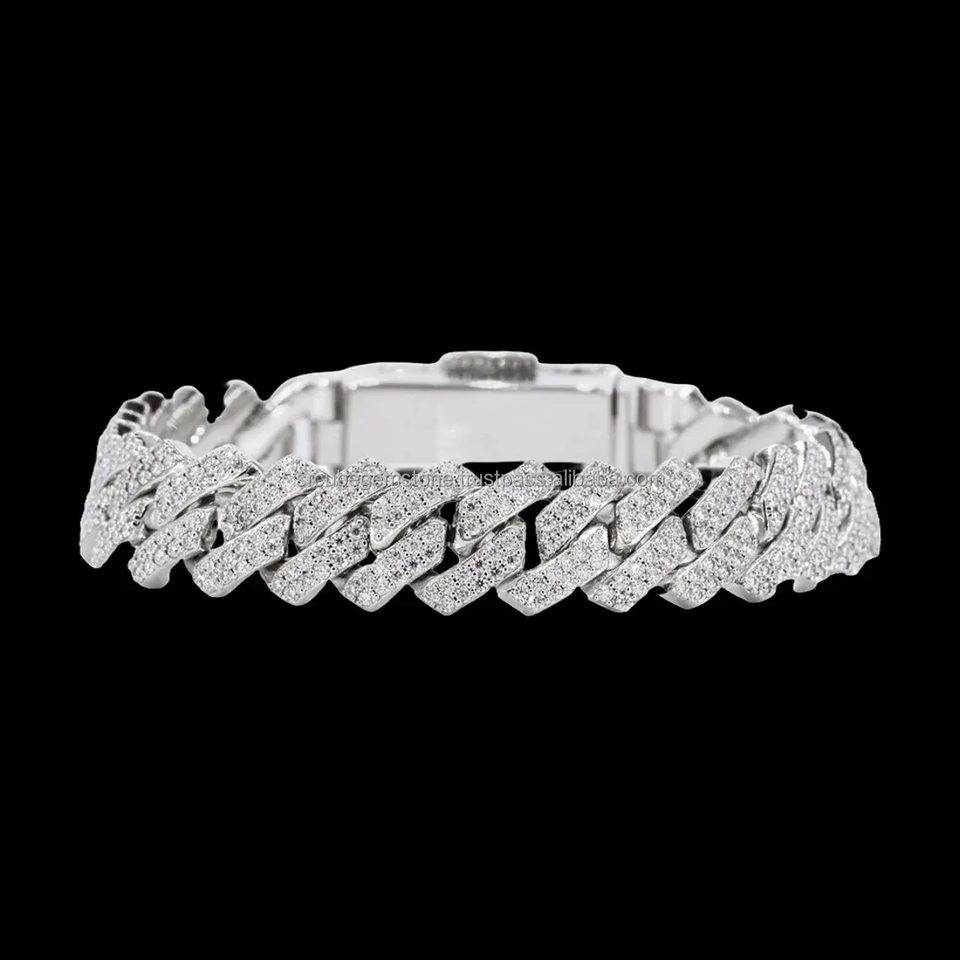 กำไลข้อมือเงินสีขาวทองสไตล์ร่วมสมัยที่ซับซ้อนสร้อยเงินสไตล์925สไตล์คิวบานเหนือกาลเวลาเครื่องประดับฮิปฮอปสร้อยข้อมือเพชรโมอิสซาไนต์ของขวัญ