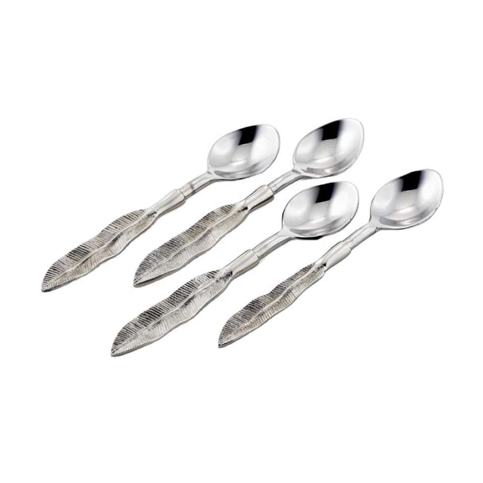 เครื่องใช้บนโต๊ะอาหารสแตนเลสสตีลไร้กาลเวลาพร้อมด้ามจับกลมทองเหลืองดีไซน์ทันสมัย4ชิ้นสำหรับการรับประทานอาหารแบบอเมริกัน