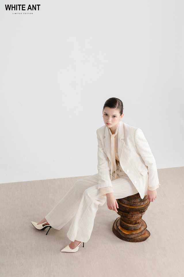 เวลานอกเสื้อTIE-รายละเอียดเสื้อเชียร์ผ้าTri-Acetateคอประดับเป็นTieเสื้อแขนยาวผู้หญิงเสื้อ