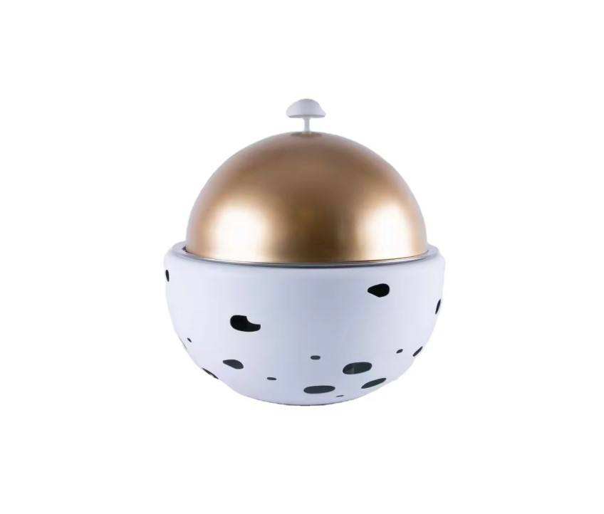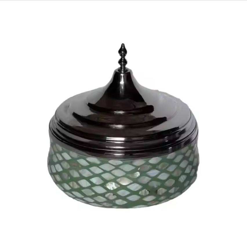 หม้อตุ๋นโลหะสไตล์วินเทจเหนือกาลเวลาพร้อมแม่ของหม้อไม้มุกปรับแต่งได้เหมาะสำหรับใช้บนโต๊ะอาหารสุดหรูที่บุฟเฟ่ต์