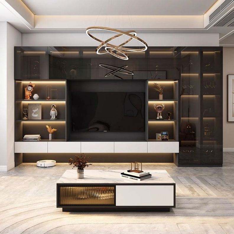 Timesong ชุดห้องรับแขกการออกแบบตกแต่งภายในที่ทันสมัยหรูหรา3D ตู้ทีวีเฟอร์นิเจอร์ห้องนั่งเล่นแบบกำหนดเอง