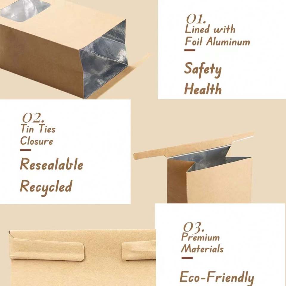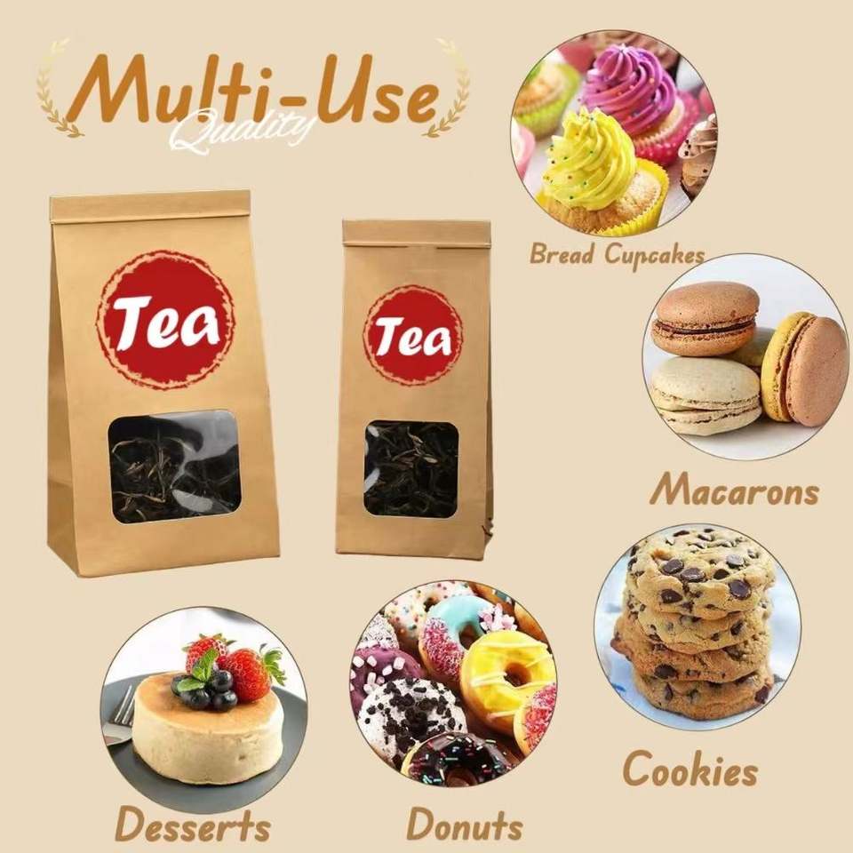 ถุงกระดาษคราฟท์แบบมีหน้าต่างใส ปิดผนึกด้วยอลูมิเนียมฟอยล์ สำหรับบรรจุชา พร้อมโลโก้