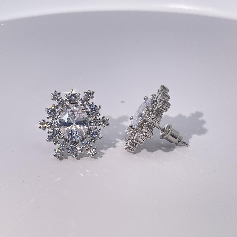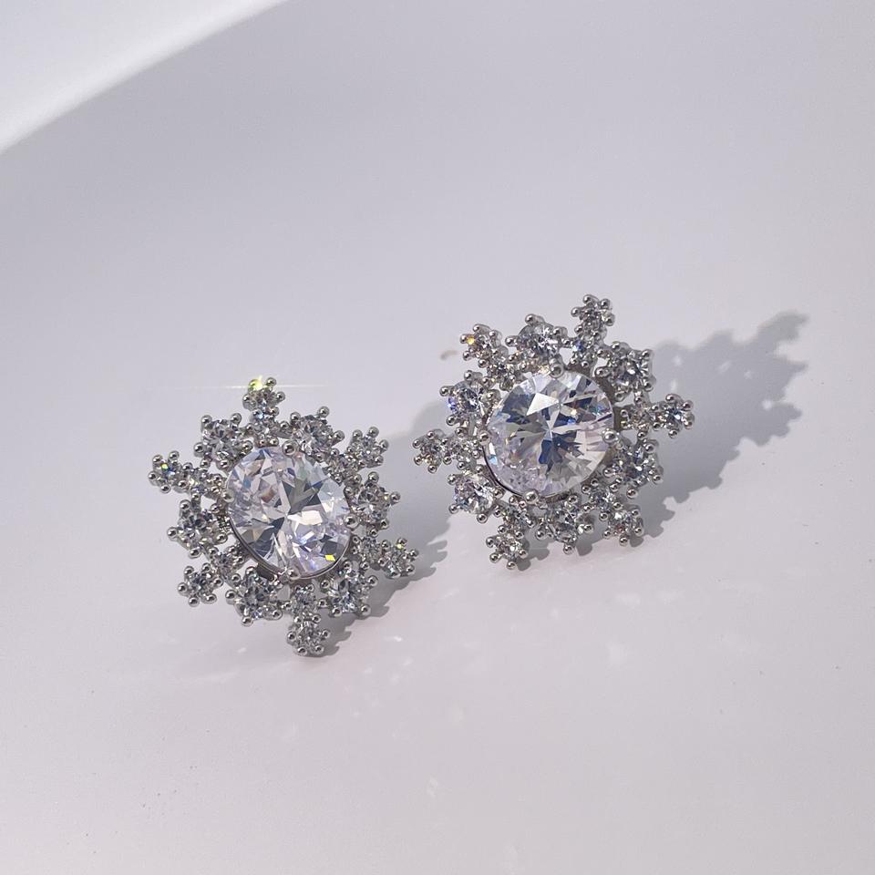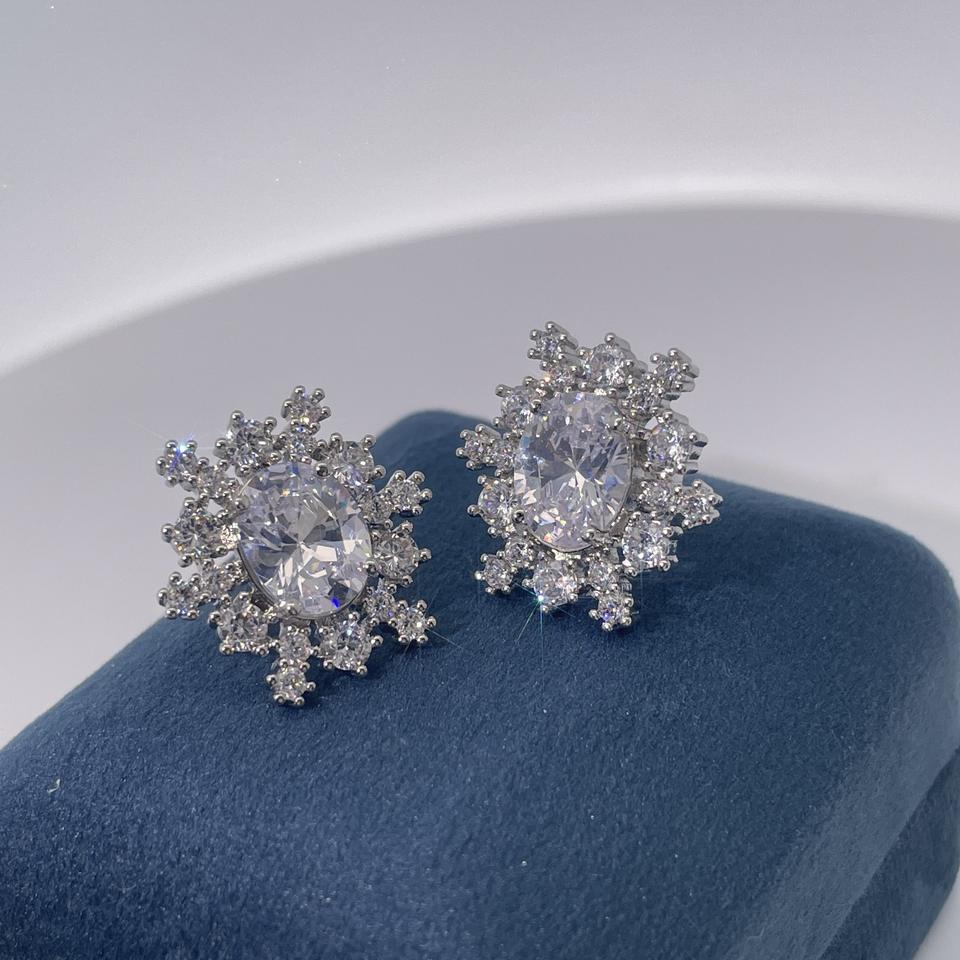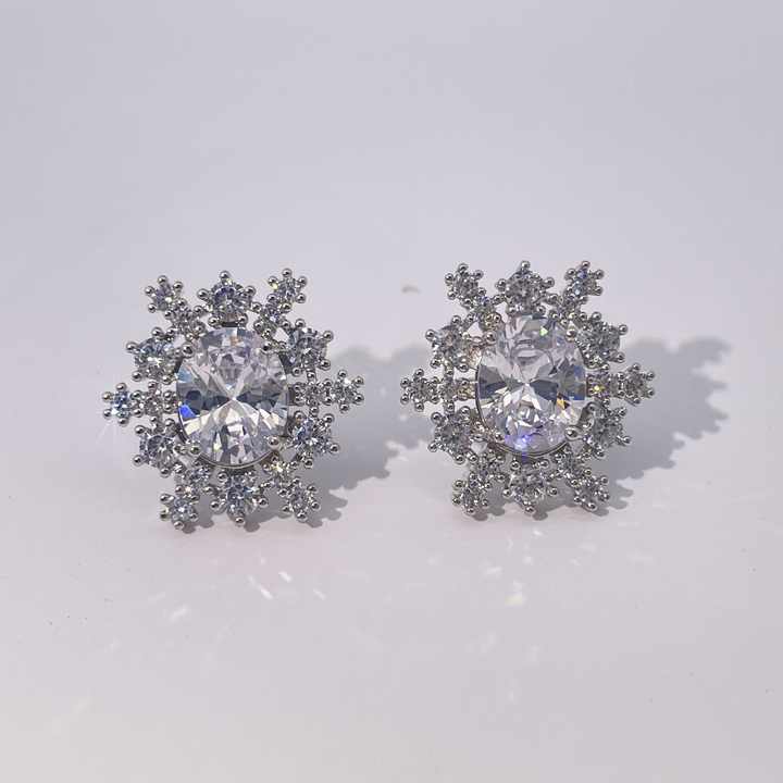 Tinayu Gems Classic Luxury Elegant Brass Gold-Plated Oval Zircon Snowflake-Shaped Stud Earrings for Women
