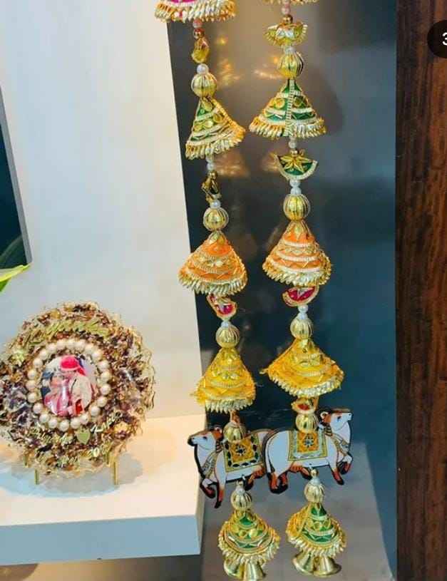 ลูกปัด tingle Gota แขวนผนังพร้อมที่แขวนวัวสำหรับตกแต่งวัดติดตั้งบนเวทีแต่งงานพิธีกรรมฮินดู