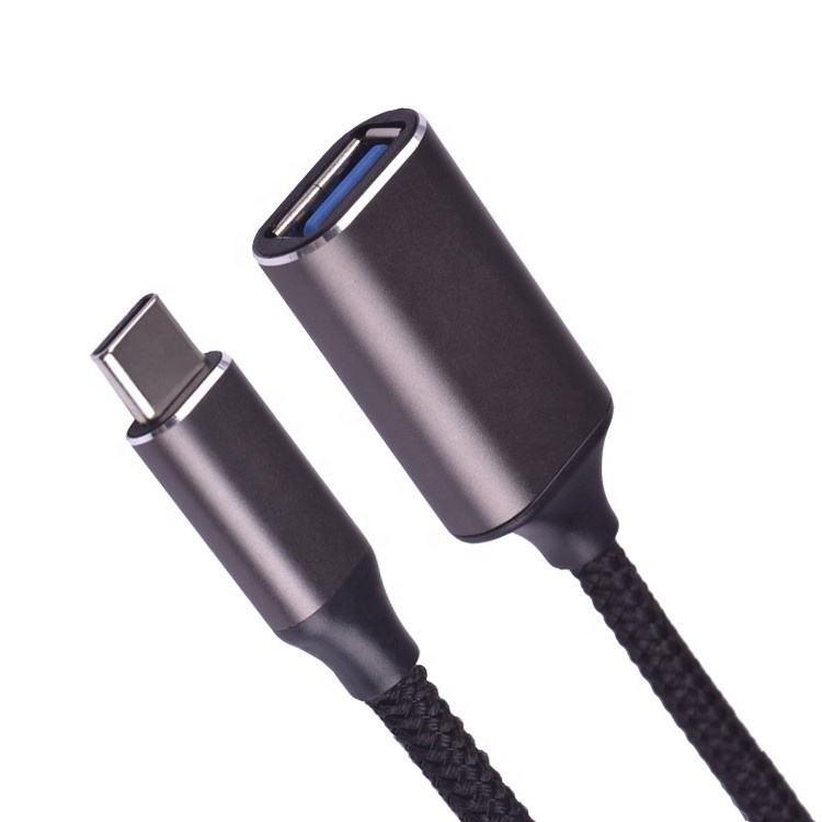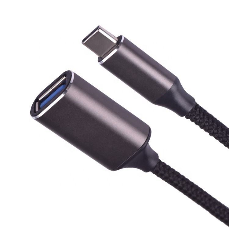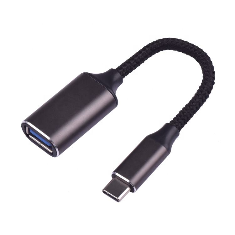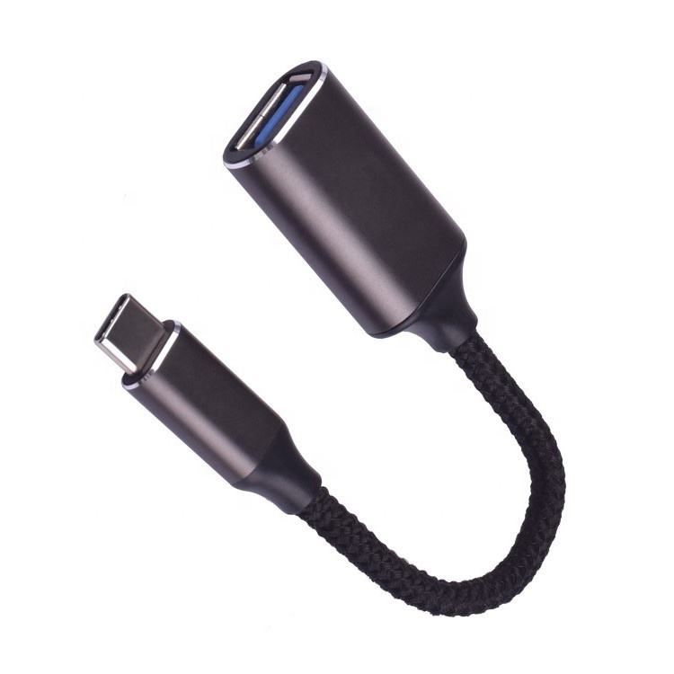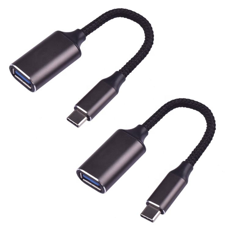 กระป๋องทองแดงสีดำ Braided 0.2M 30AWG ประเภท C ชายไปยัง Usb หญิง OTG สายสำหรับโทรศัพท์มือถือ