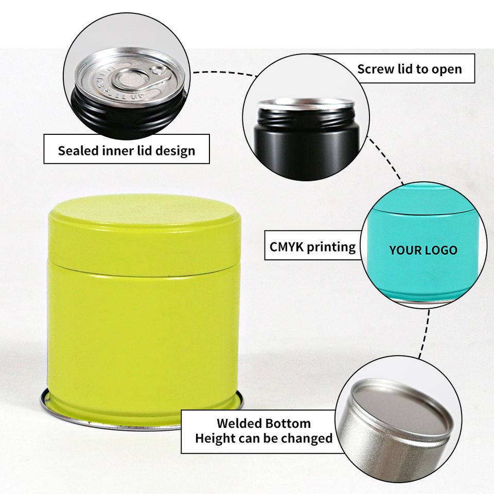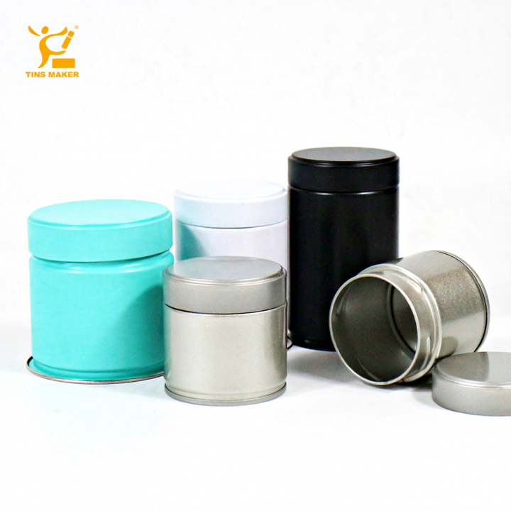 Tinsmaker Custom Food Grade Airtight Glossy Seamless Coffee Tin Case Empty Twg Tea Metal Cylinder Matcha Container Box Lid
