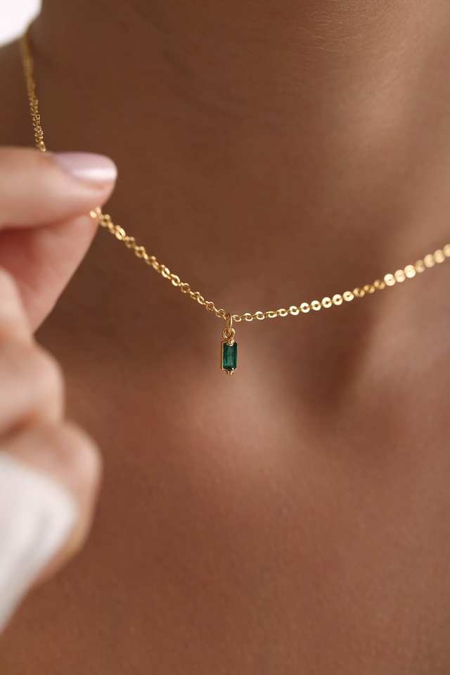 สร้อยคอประดับมรกตทรงบาแกตต์ขนาดเล็ก เงินแท้ 925 ชุบทอง 14K ของขวัญสำหรับเธอ