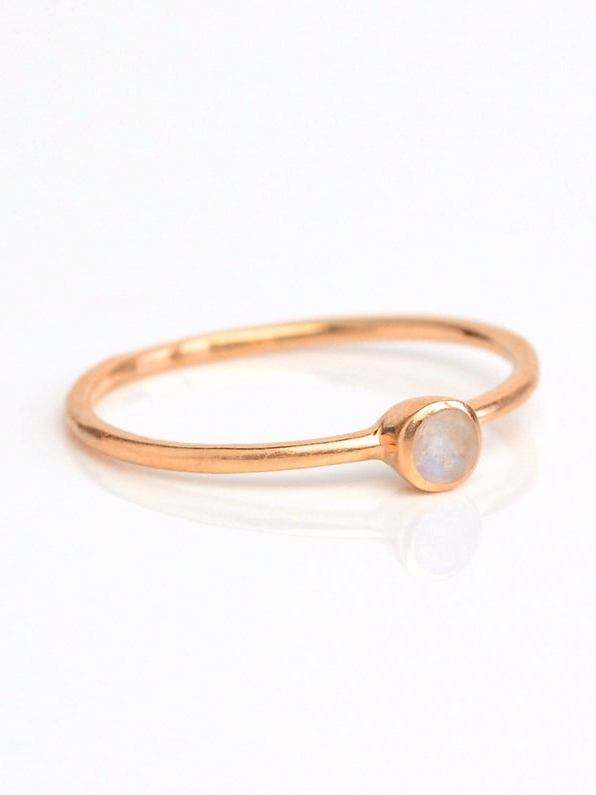 Tiny Moonstone Round Shape Gold แหวน Vermeil