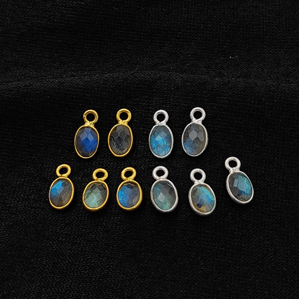 จี้อัญมณีลาบราดอไรต์รูปฟักทองขนาดเล็ก4x6มม. ชุบโรเดียมชุบทอง925จี้เสน่ห์