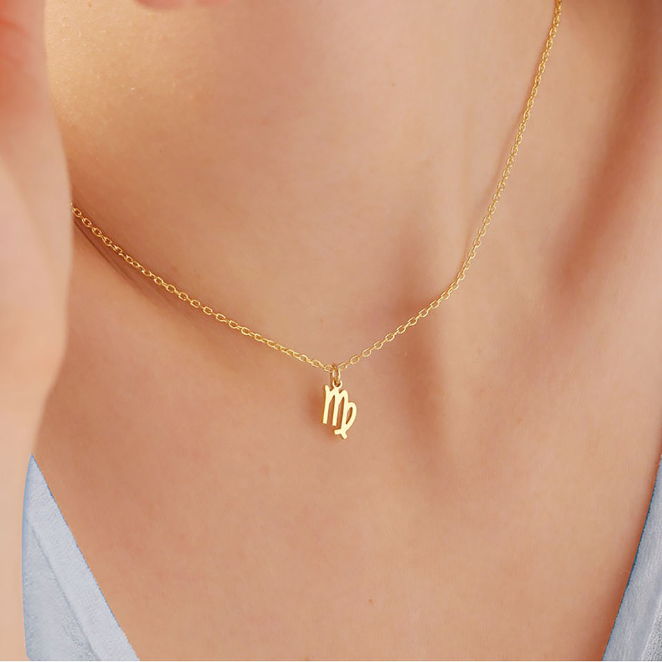 สร้อยคอราศีเมถุนโหราศาสตร์ราศีเล็กๆกล่องทองเหลืองสร้อยคอชุบทองคุณภาพสูง