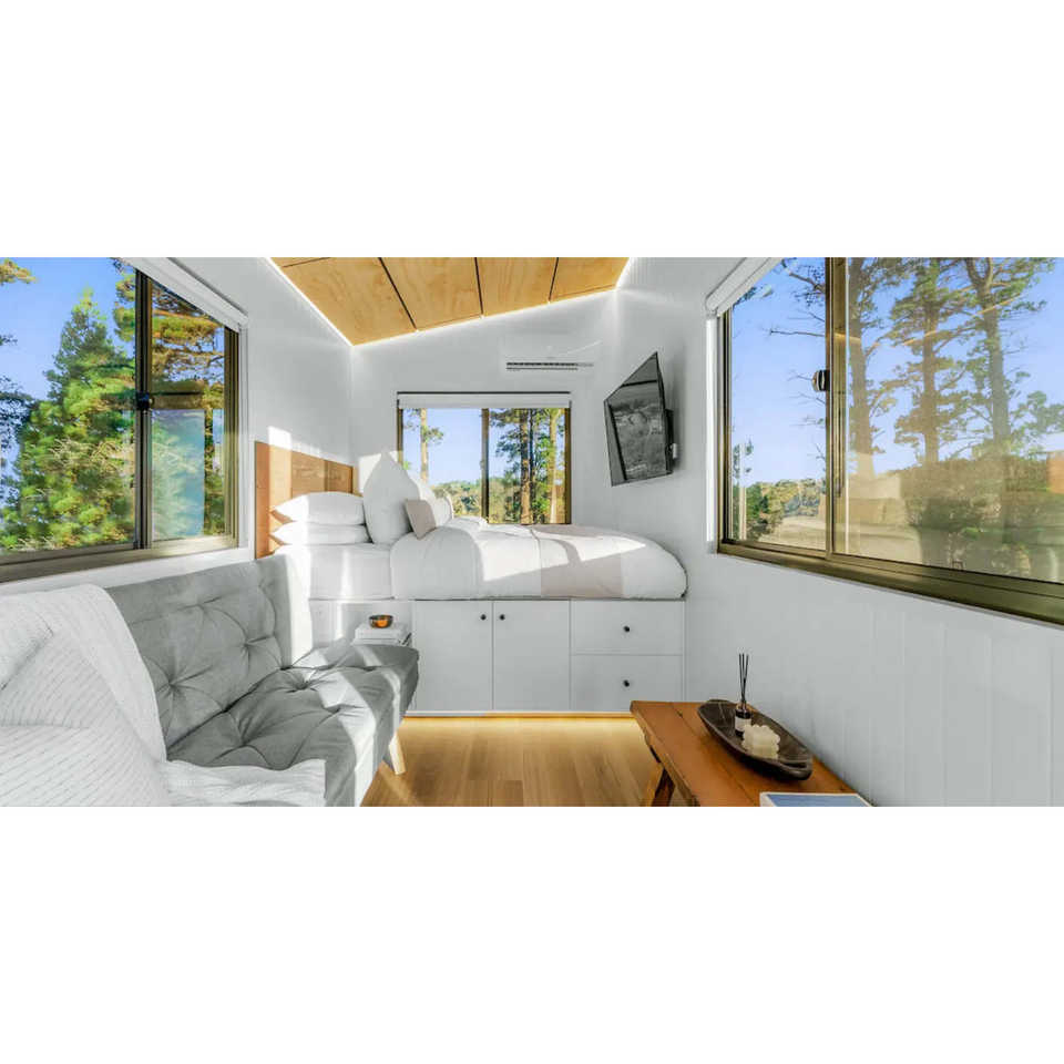 บ้านเคลื่อนที่ขนาดเล็ก 20 ฟุต/40 ฟุต แบบขยายได้ ห้องนั่งเล่น ห้องนอน ห้องน้ำ สำนักงาน วิลล่ากลางแจ้ง ผนังแซนด์วิช แผ่นเหล็ก โมเดิร์น