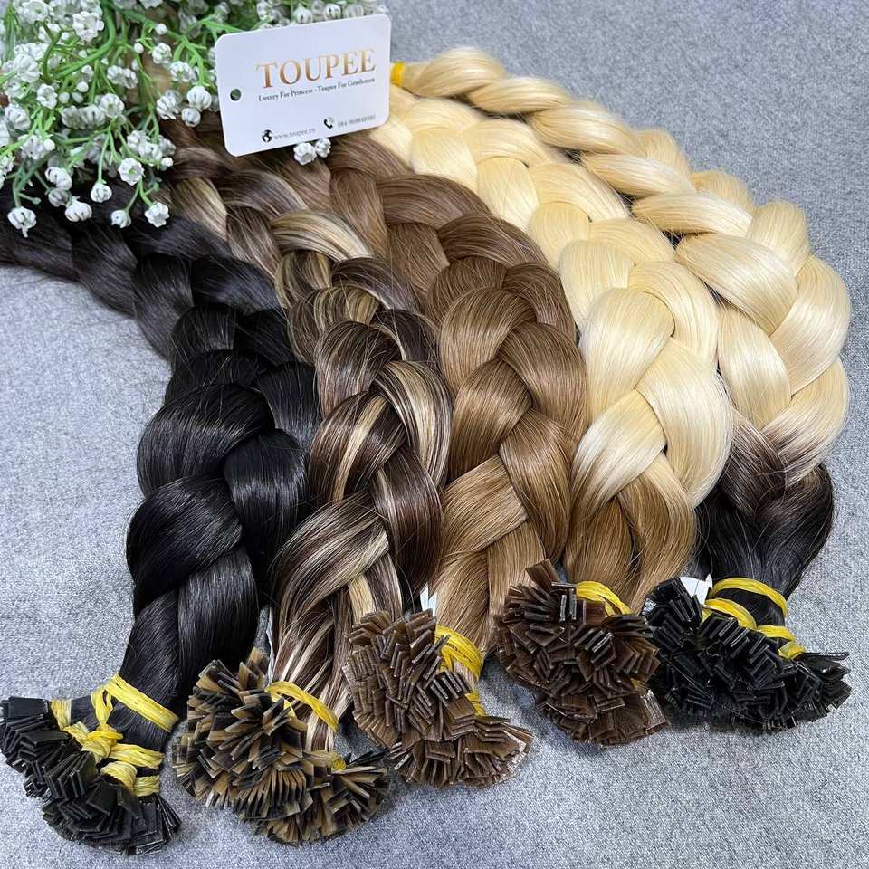 ปลายต่อผมของมนุษย์แท่งสีดำคู่สุดสำหรับผู้หญิงที่มีความหลากหลายของสี # 1B-> #60,#613