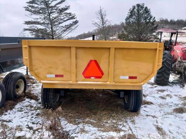 รถพ่วงดั๊มพ์สำหรับรถแทรกเตอร์แบบมีที่ยกเทท้าย โครงสร้างเหล็ก ใช้งานง่าย เหมาะสำหรับการขนส่งในฟาร์ม