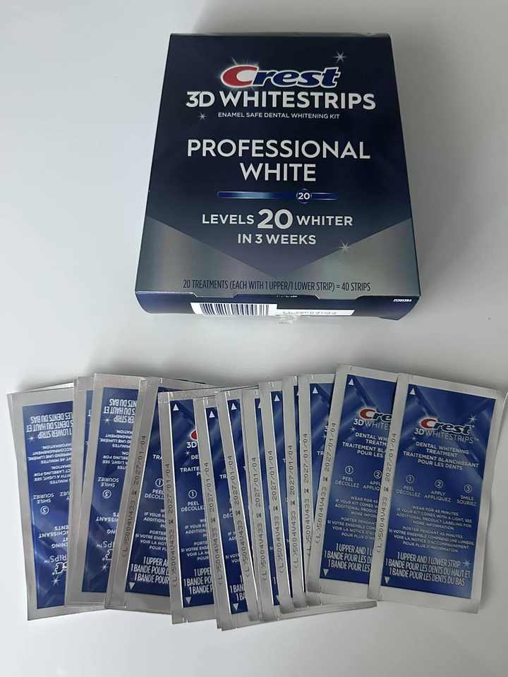 แผ่นฟอกสีฟันระดับมืออาชีพ 20 ซอง ซองละ 40 ชิ้น 6% ไฮโดรเจนเพอร์ออกไซด์ และกลีเซอรีน