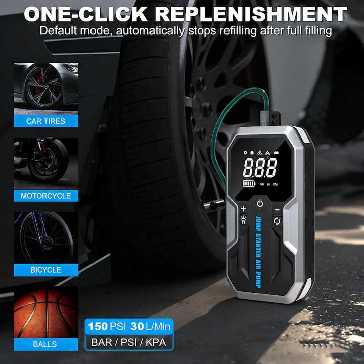 เครื่องสูบลมยางแบบพกพา พร้อมฟังก์ชั่นจั๊มพ์สตาร์ท 150PSI ใช้เป็นพาวเวอร์แบงค์ได้