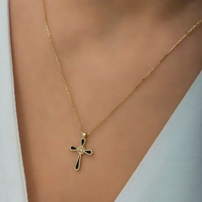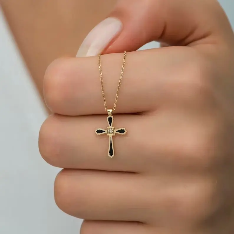 จี้เพชรโมอิสซาไนต์รูปกางเขน สร้อยคอเงินแท้ 925 ชุบทอง ดีไซน์ลำลอง/สปอร์ต สำหรับผู้หญิง เครื่องประดับทางศาสนา ของขวัญ น้ำหนัก 7 กรัม