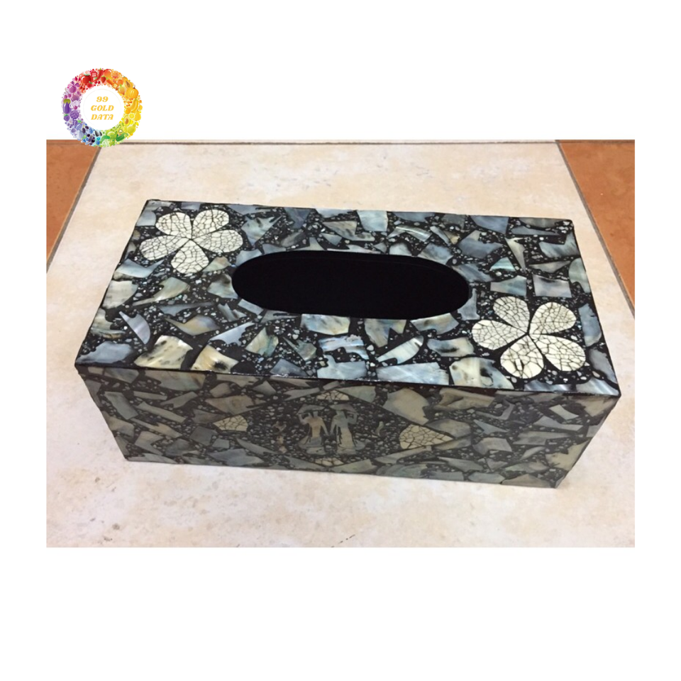 กล่องใส่กระดาษทิชชูฝาไม้ทำมือสำหรับตกแต่งภายในสุดหรูและเป็นของขวัญ กล่องทิชชูเคลือบแลคเกอร์ฝังมุกหรูหรา