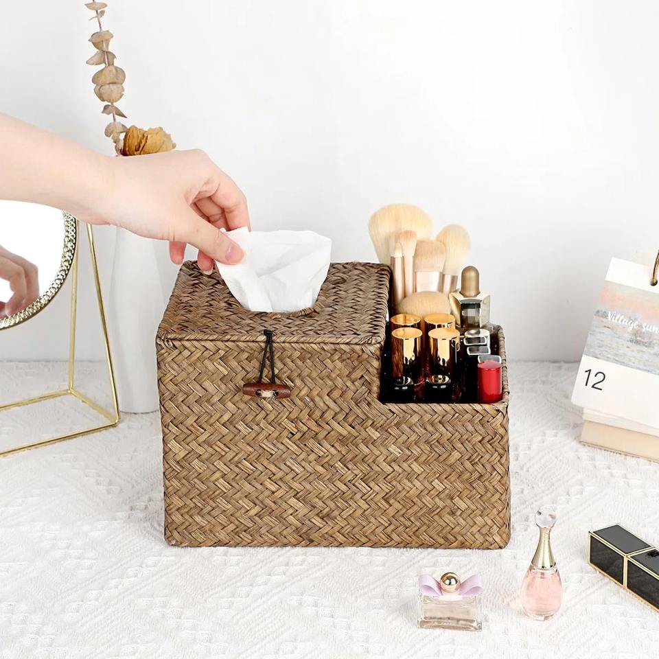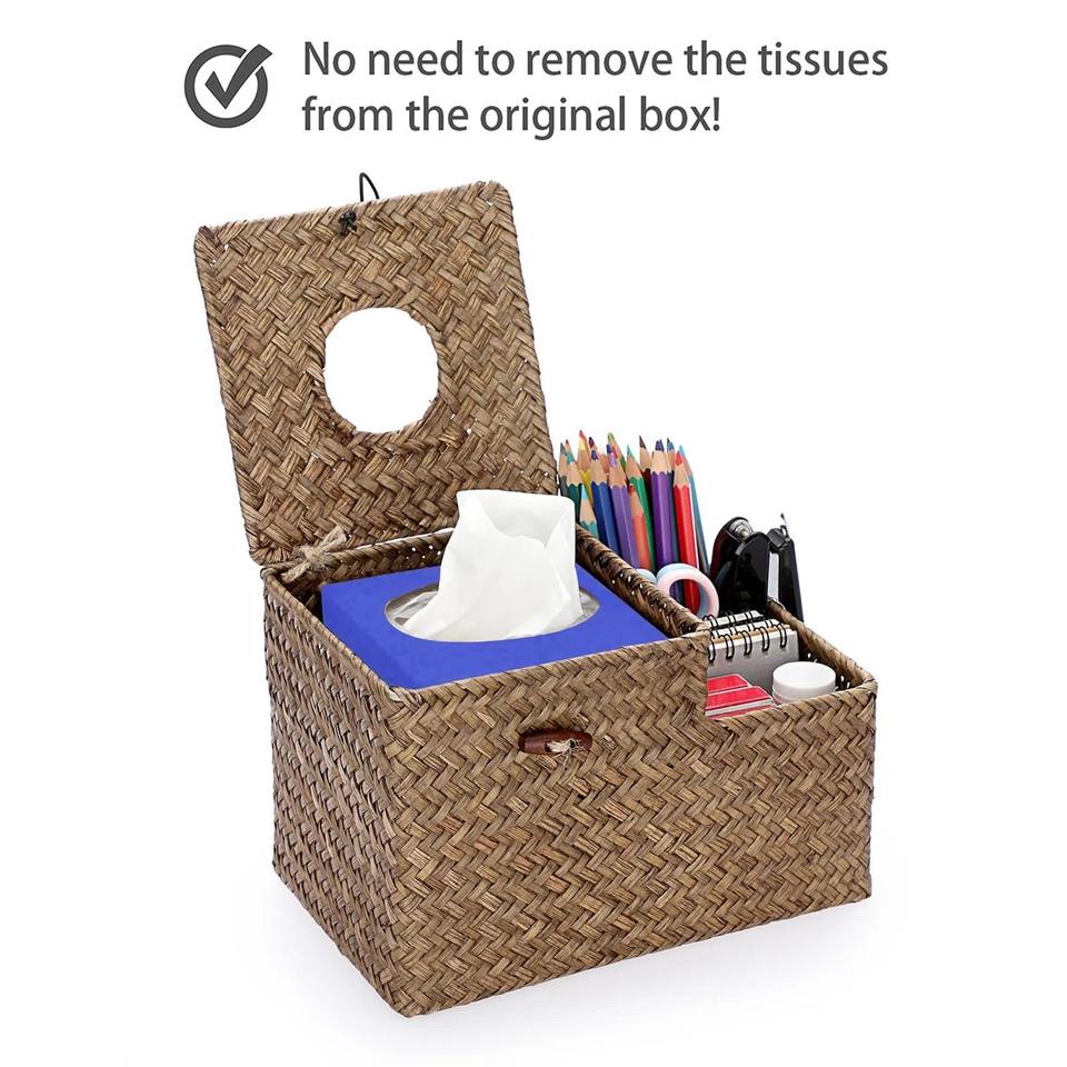 ชื่อ:กล่องทิชชู่สานหญ้าทะเล ขนาด: L8.7 x W5.5 x H5.5 นิ้ว