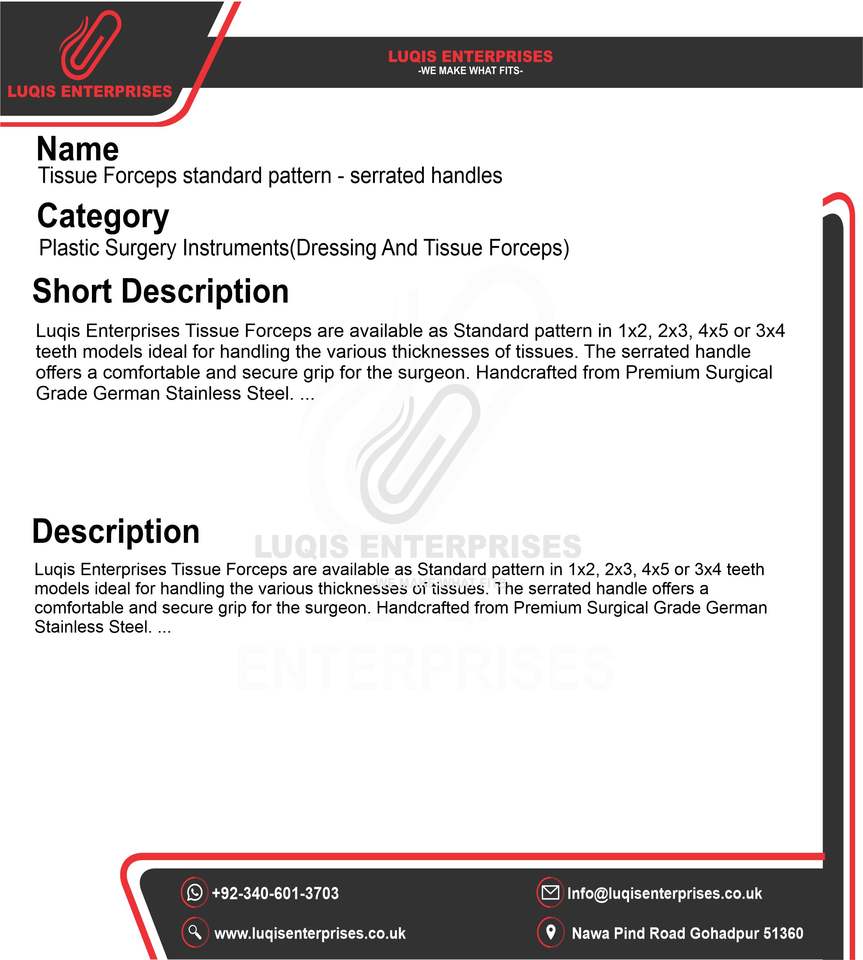 คีมจับเนื้อเยื่อแบบมาตรฐาน ด้ามจับแบบหยัก เครื่องมือผ่าตัด สแตนเลสสตีล คีมแพทย์ความแม่นยำสูง