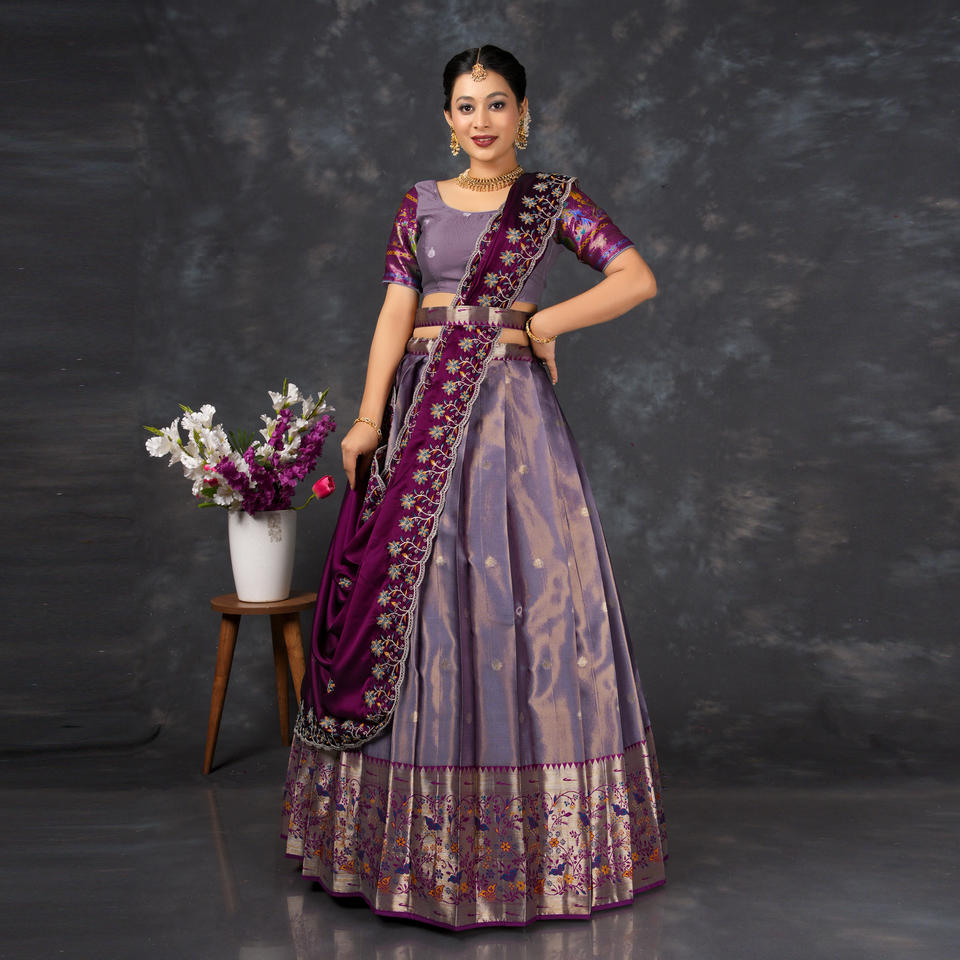 ชุดเลเฮนกาโชลีผ้าไหมทอ แต่งขอบกระโปรงบาน เสื้อหรูหรา ผ้าคลุมไหล่ปักลาย แบบดั้งเดิม สำหรับงานรับปริญญา ชายหาด หรืองานดิวาลี