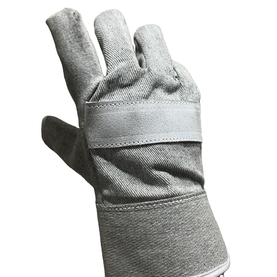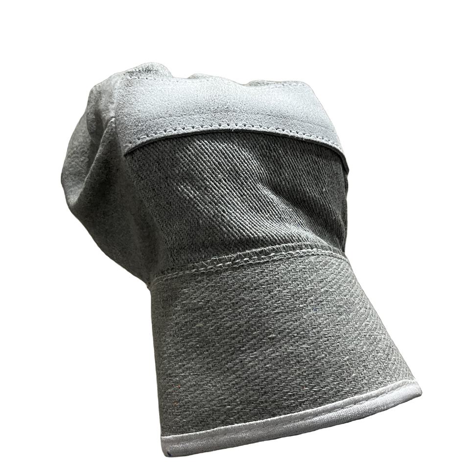 ถุงมือนิรภัยทำจากหนังสีเทาไททาเน็กไททาเนียมพร้อมปลอกแขนด้านหลังและสายรัดข้อนิ้วสำหรับงานหนักเพื่อการป้องกันการเชื่อมที่รุนแรง
