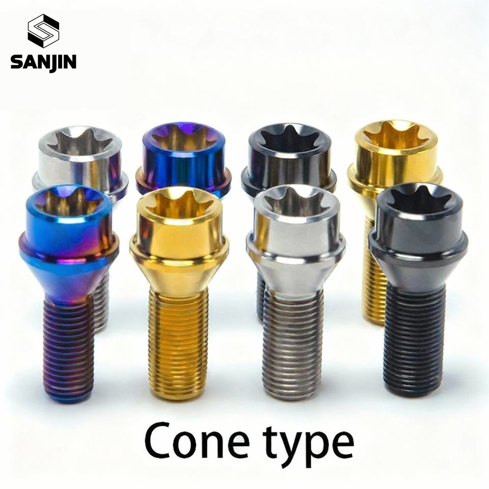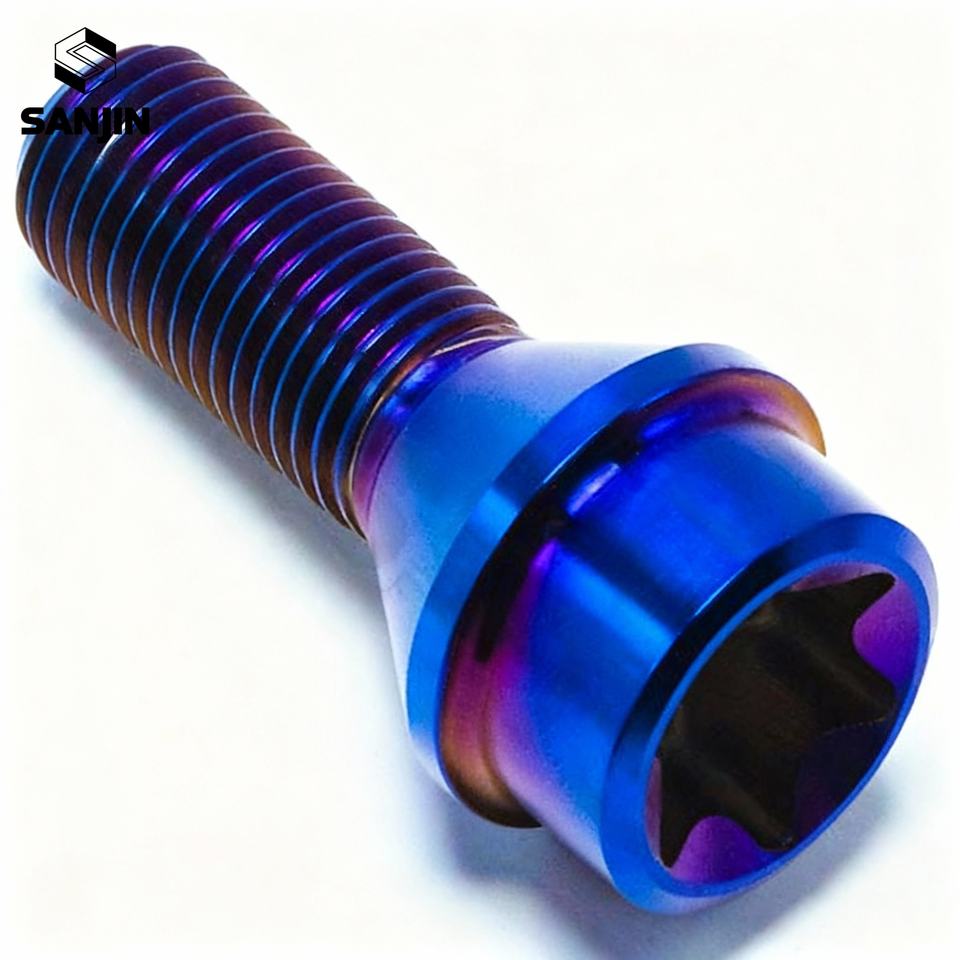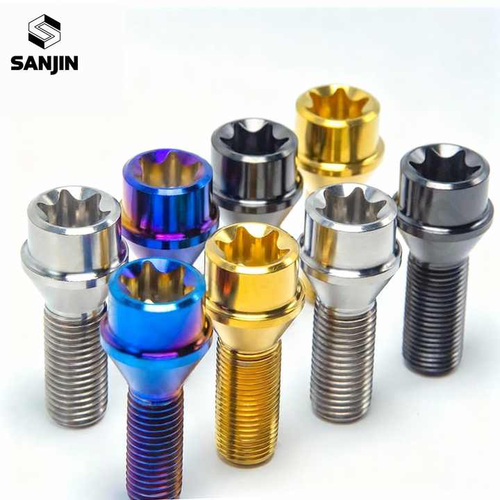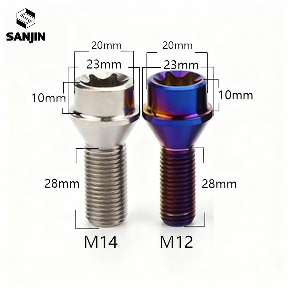 สลักเกลียวล้อหัวแบนโลหะผสมไทเทเนียมสำหรับดัดแปลงรถยนต์ น้ำหนักเบา ผ่านกระบวนการอโนไดซ์ คลาส 10 M12/M14X28 P1.25/P1.5มม.