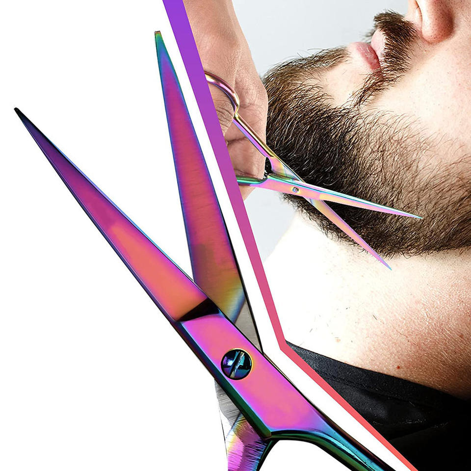 กรรไกรสแตนเลสคาร์บอนสูง6.5นิ้วกรรไกรแต่งผมทำจากไทเทเนียมสีเคลือบสำหรับร้านเสริมสวยและใช้ในบ้าน