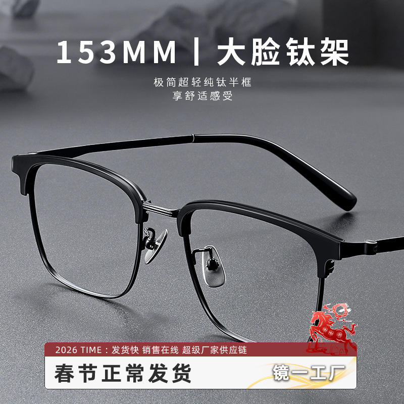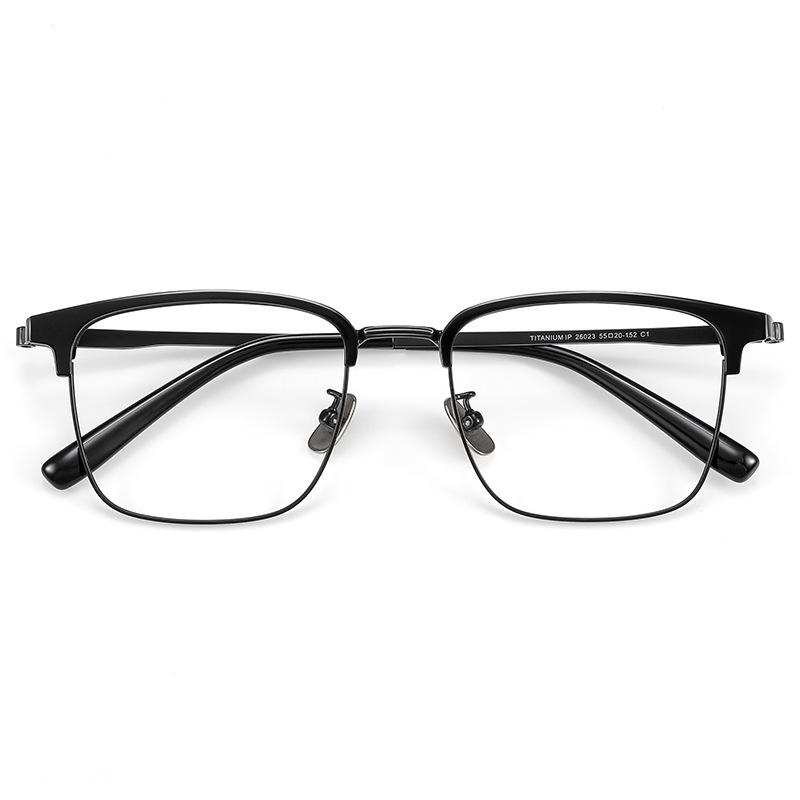 กรอบแว่นตาไทเทเนียม 26023 ทรงสี่เหลี่ยมผืนผ้าเต็มกรอบสำหรับผู้ชาย น้ำหนักเบา แว่นสายตาคุณภาพสูง กรอบไทเทเนียมแท้