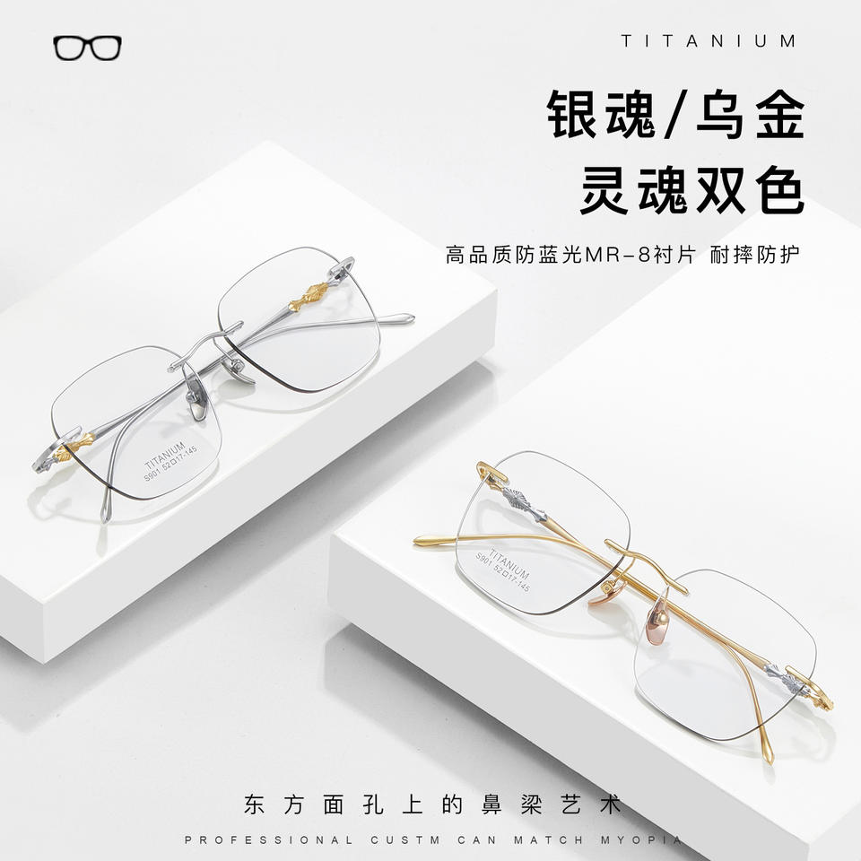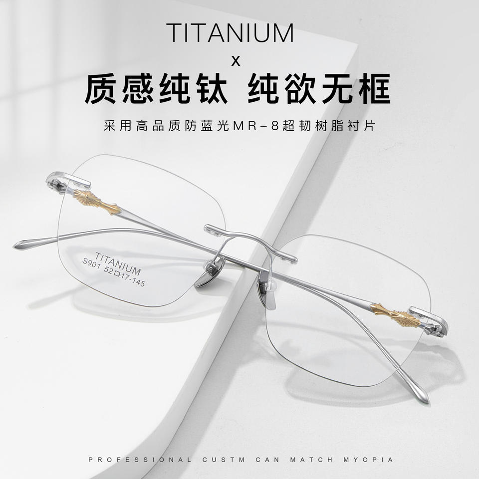 กรอบแว่นตาไทเทเนียม S901 ไทเทเนียมแท้ MR8 ป้องกันแสงสีฟ้า กันกระแทก ใส่เลนส์สายตาได้ ผลิตที่เซินเจิ้น