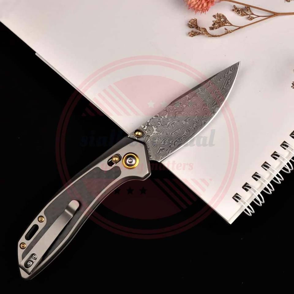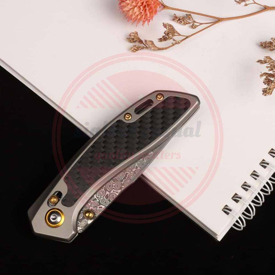 มีดพับพกพาด้ามไทเทเนียมสำหรับการเอาชีวิตรอดทางยุทธวิธีกลางแจ้ง/มีดพกพาอเนกประสงค์ลายดามัสกัส