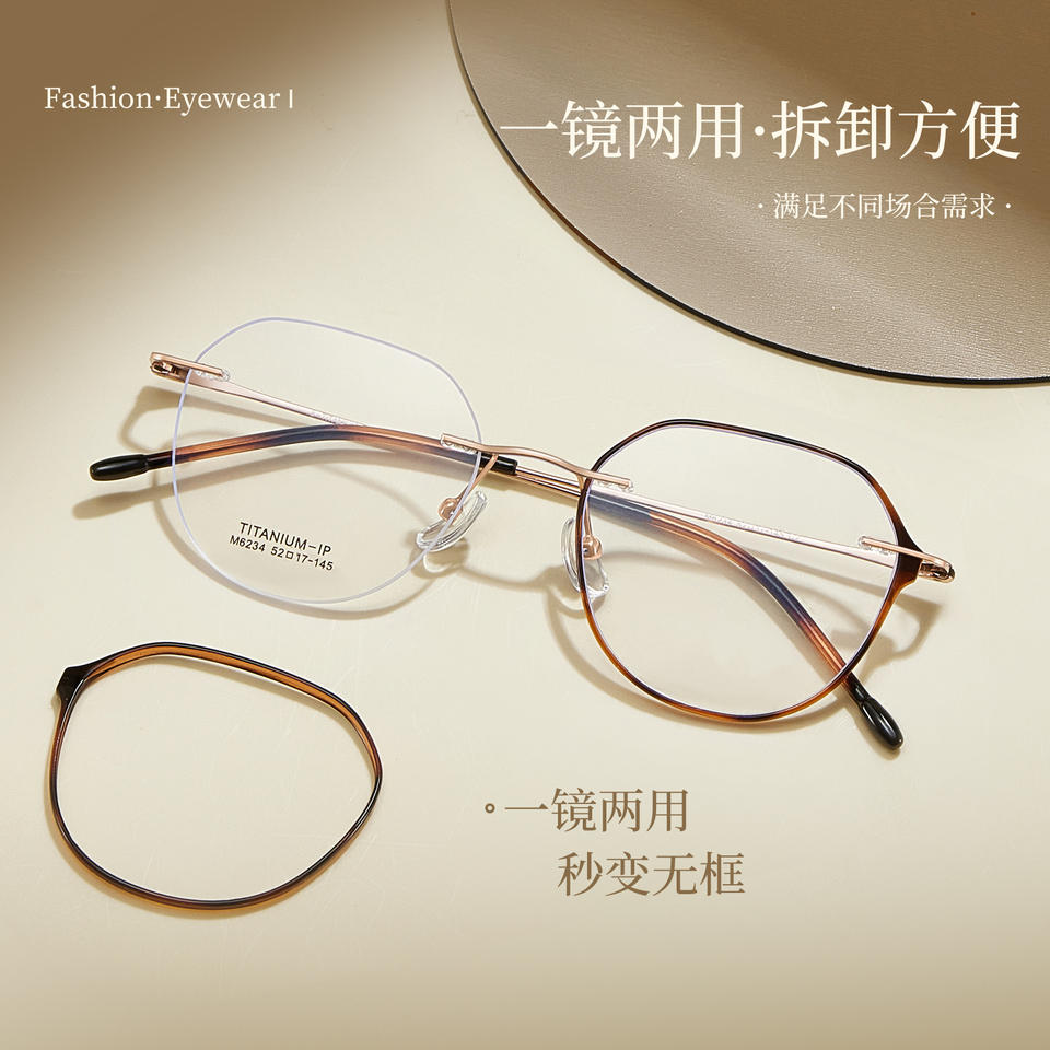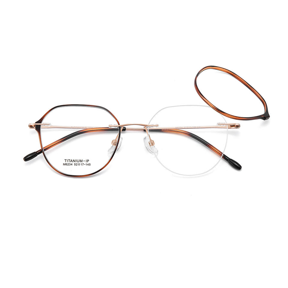 กรอบแว่นตาไทเทเนียมไอพี M6234 52-17-145 ครึ่งกรอบทรงเรขาคณิตเลนส์เรซิ่นสำหรับทุกเพศแบบเปลี่ยนได้