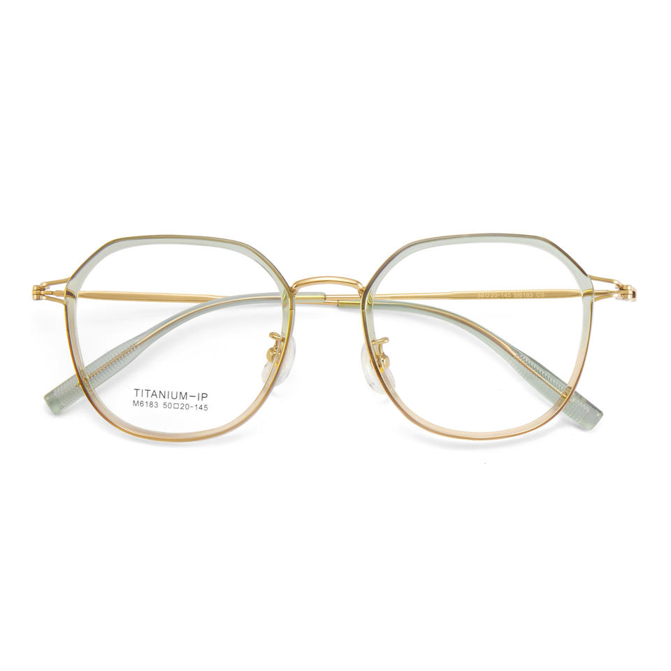 กรอบแว่นตาไทเทเนียมทรงแปดเหลี่ยม รุ่น M6183 50-20-145 แบบเต็มกรอบ สำหรับทุกเพศ เลนส์อะคริลิกป้องกันแสงสะท้อน