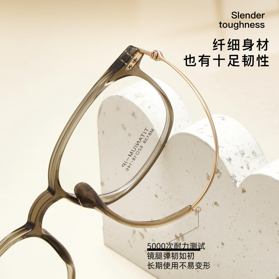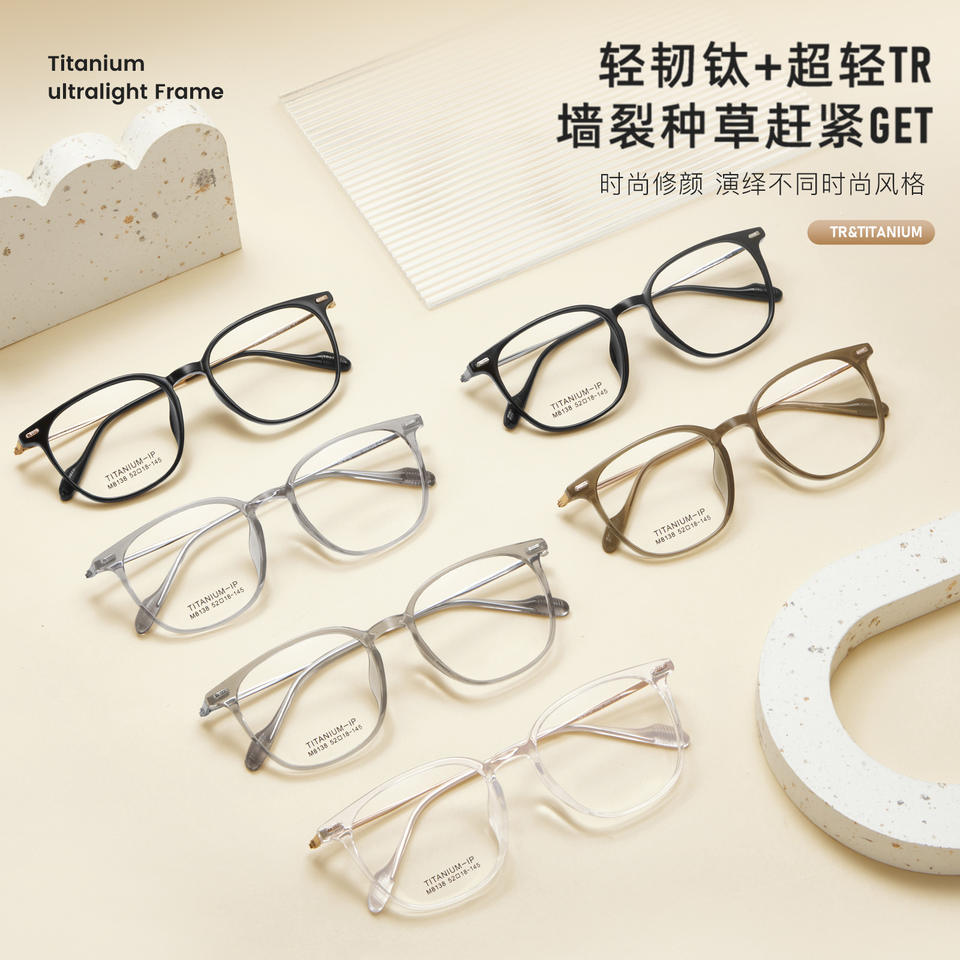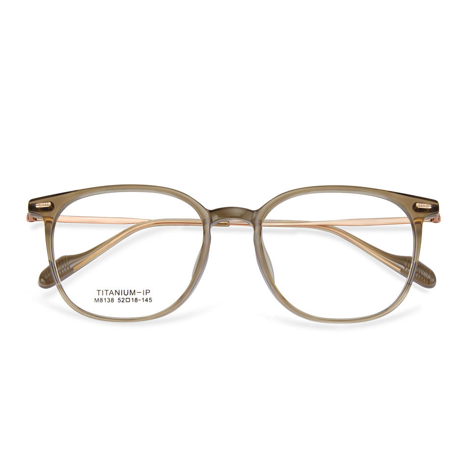 กรอบแว่นตาไทเทเนียมทรงกลม รุ่น M8138 52-18-145 น้ำหนักเบา แบบเต็มกรอบ สำหรับทุกเพศ เลนส์อะคริลิคแบบไม่มีค่าสายตา ผลิตที่เมืองตันหยาง